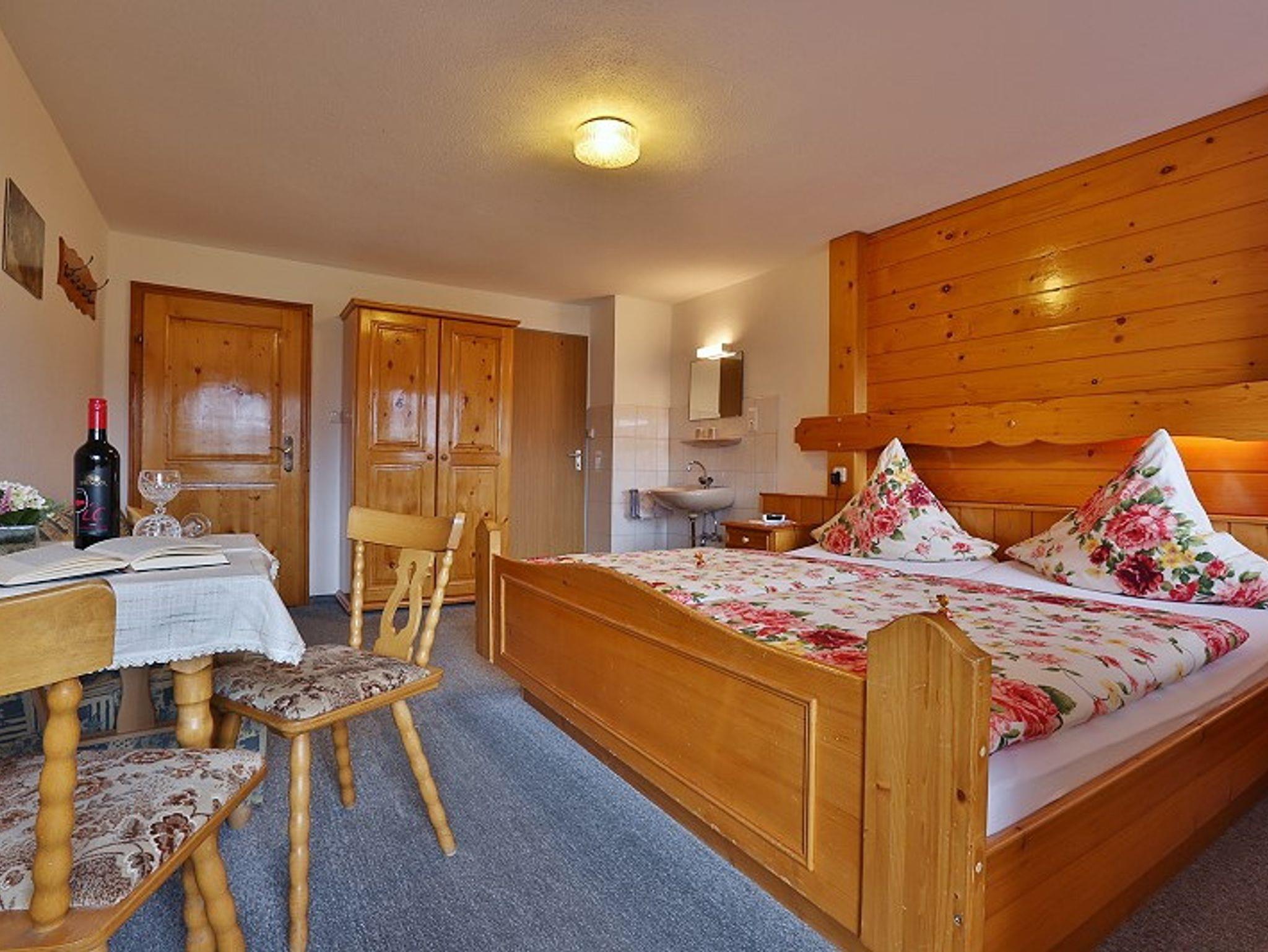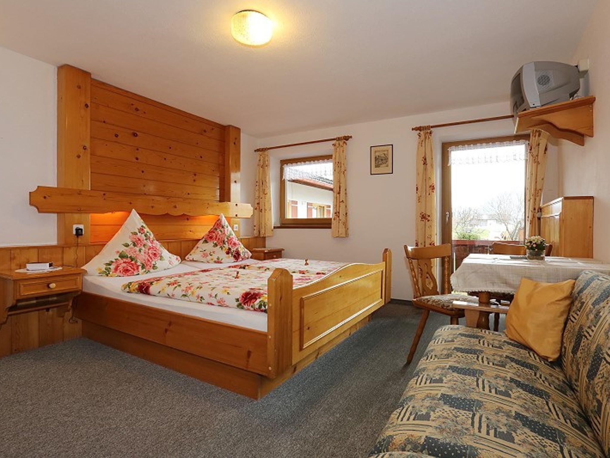 Das Doppelzimmer Ramsau für 2-3 Personen bietet eine Dusche, WC, Kabel TV, Sitzecke, Zusatzliege, Radiowecker und Balkon mit Blick zum Watzmann in östlicher Lage im Obergeschoss. Das Zimmer Ramsau hat eine Grundfläche von ca. 20 qm.