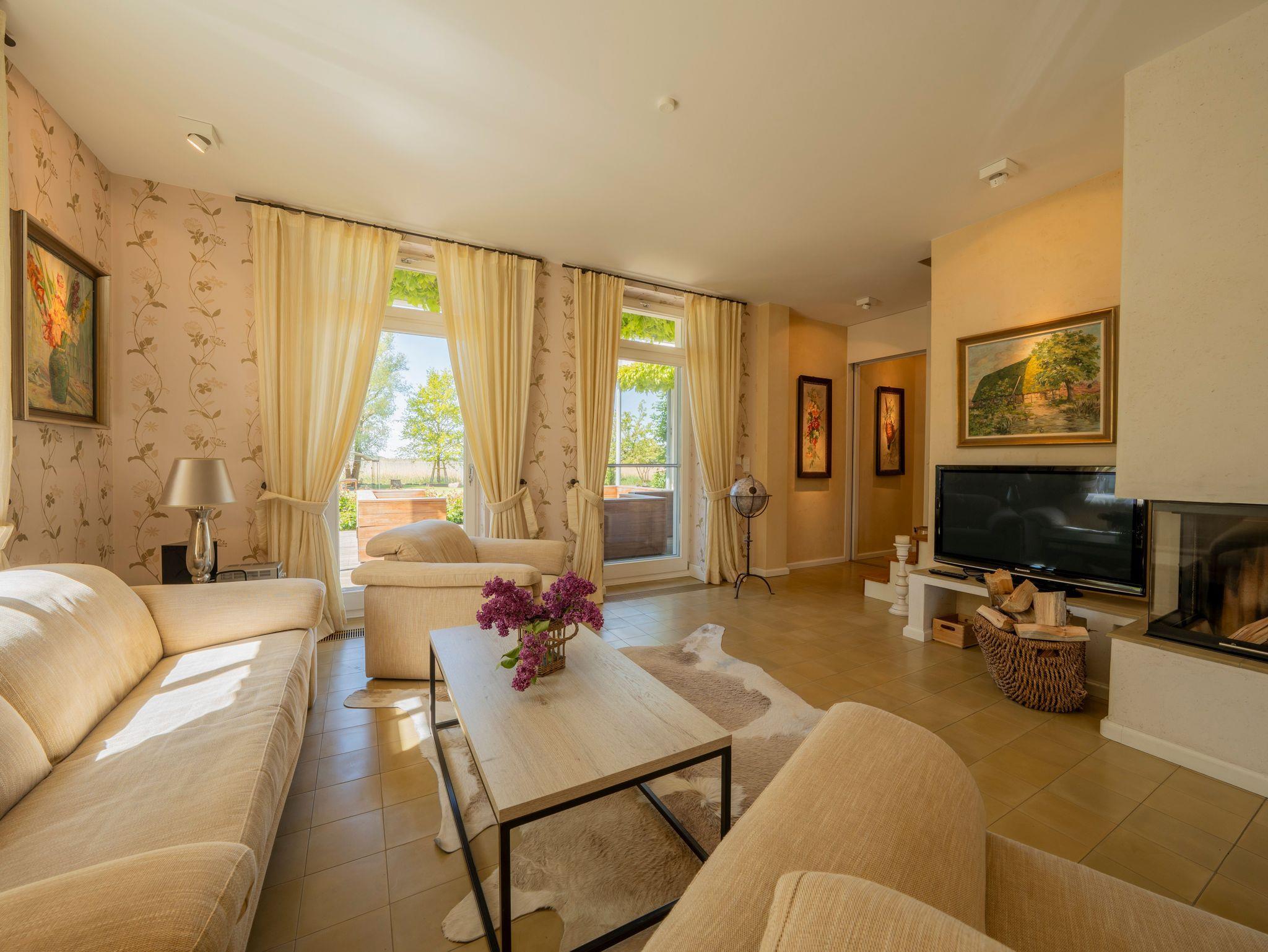 • 2 großzügige Wohnbereiche mit gemütlicher Sitzgarnitur, TV-Flatscreen und Kamin