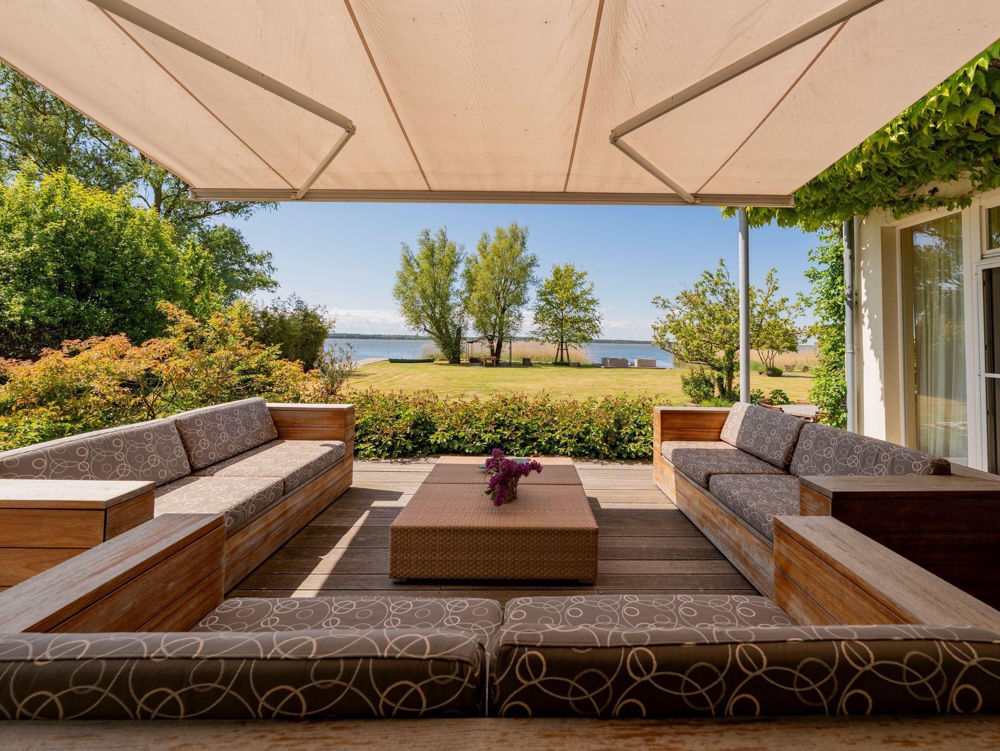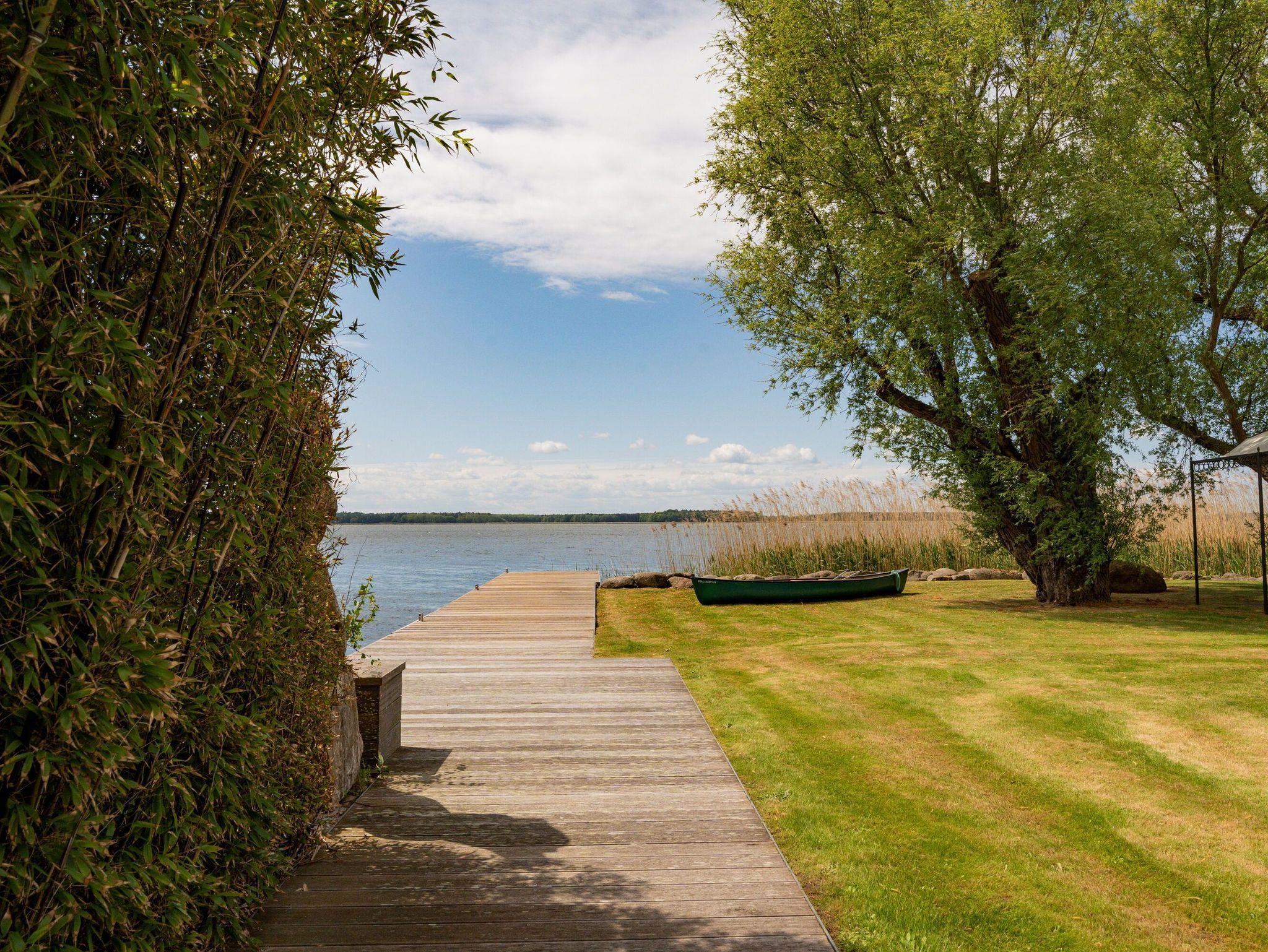 Luxuriöses Ferienhaus Peeneblick direkt am Peenestrom mit Bootssteg, Außensauna und traumhaftem Seeblick.