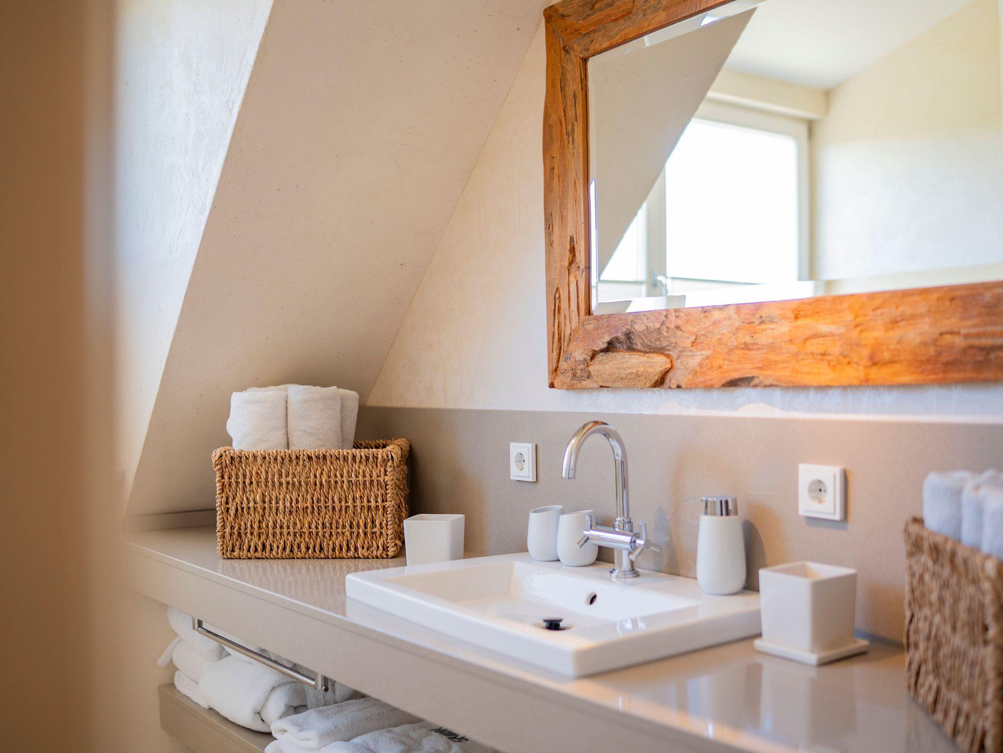 • 2 luxuriöse Bäder mit Eckbadewanne bzw. Badewanne, Dusche, WC, Waschmaschine und Trockner