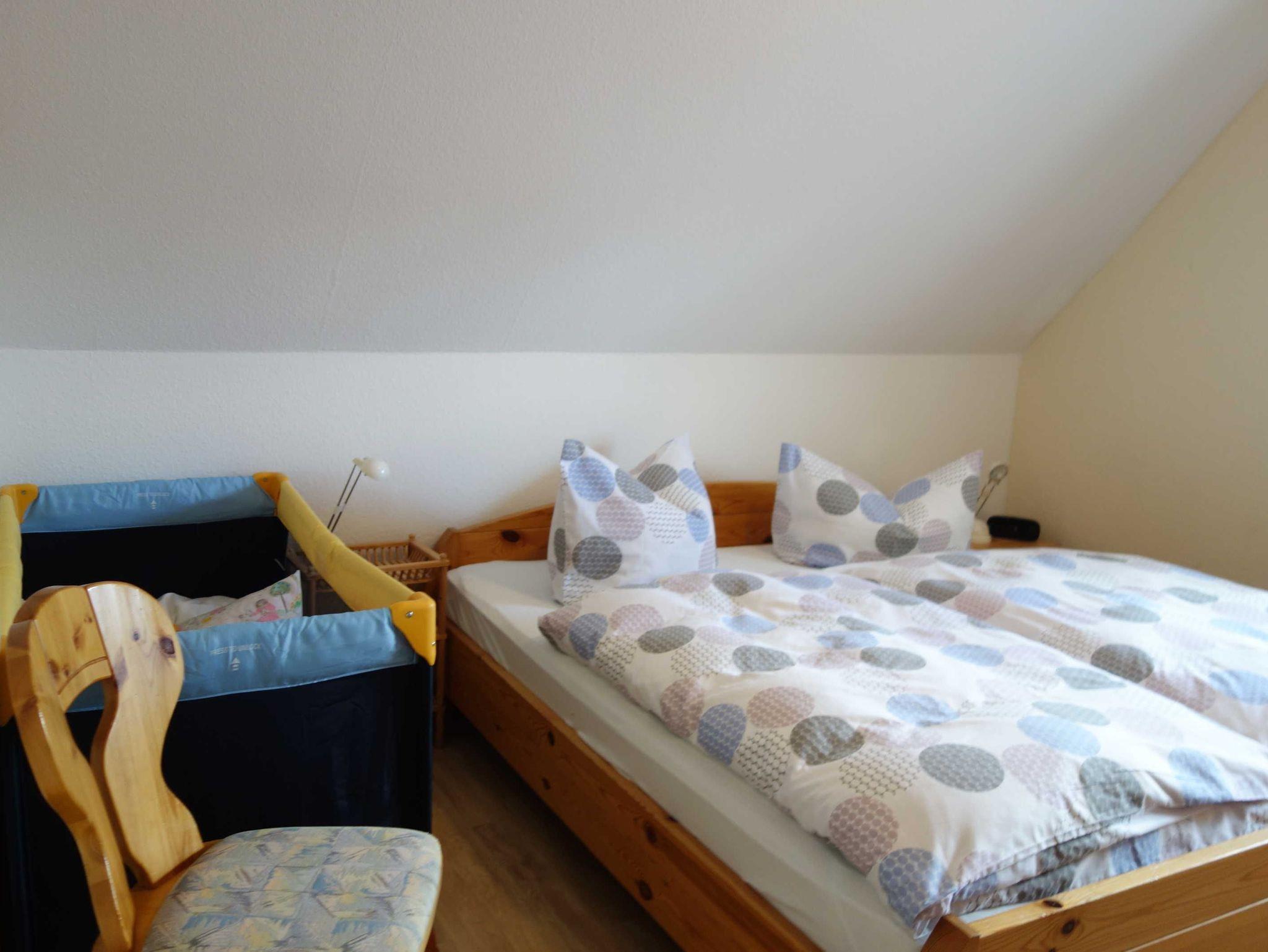 • 1 Schlafzimmer mit Doppelbett (+ Kinderbett) im Obergeschoss
