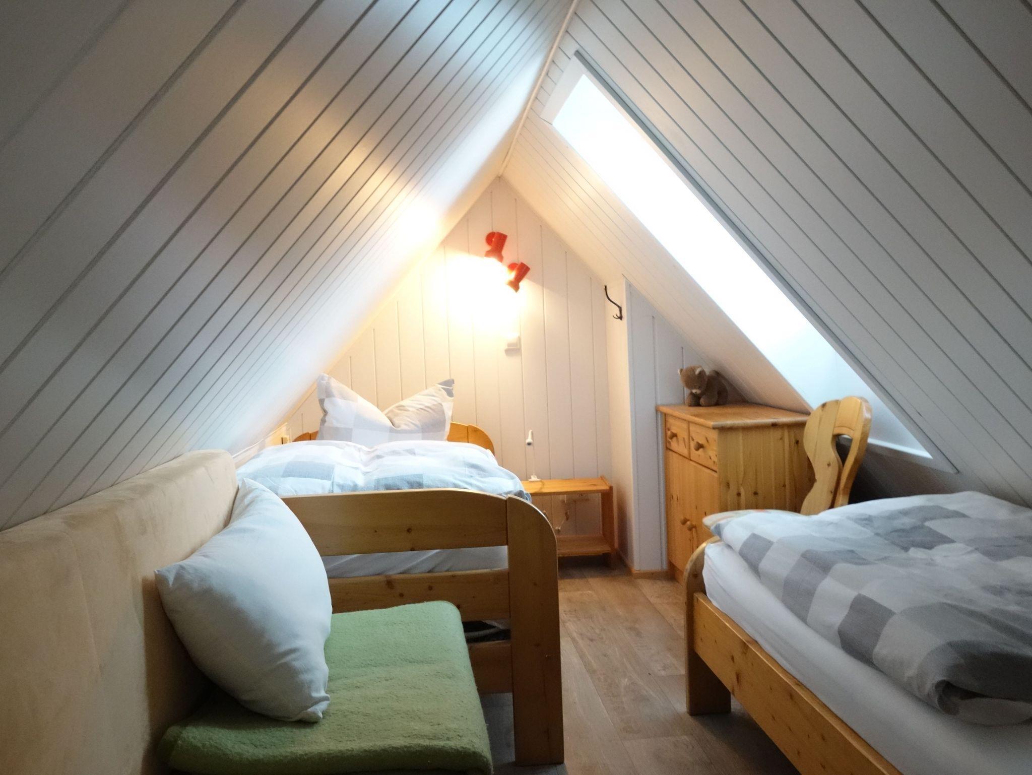 • 1 zusätzliches Schlafzimmer mit 2 Einzelbetten im Dachgeschoss (über eine Treppe erreichbar)