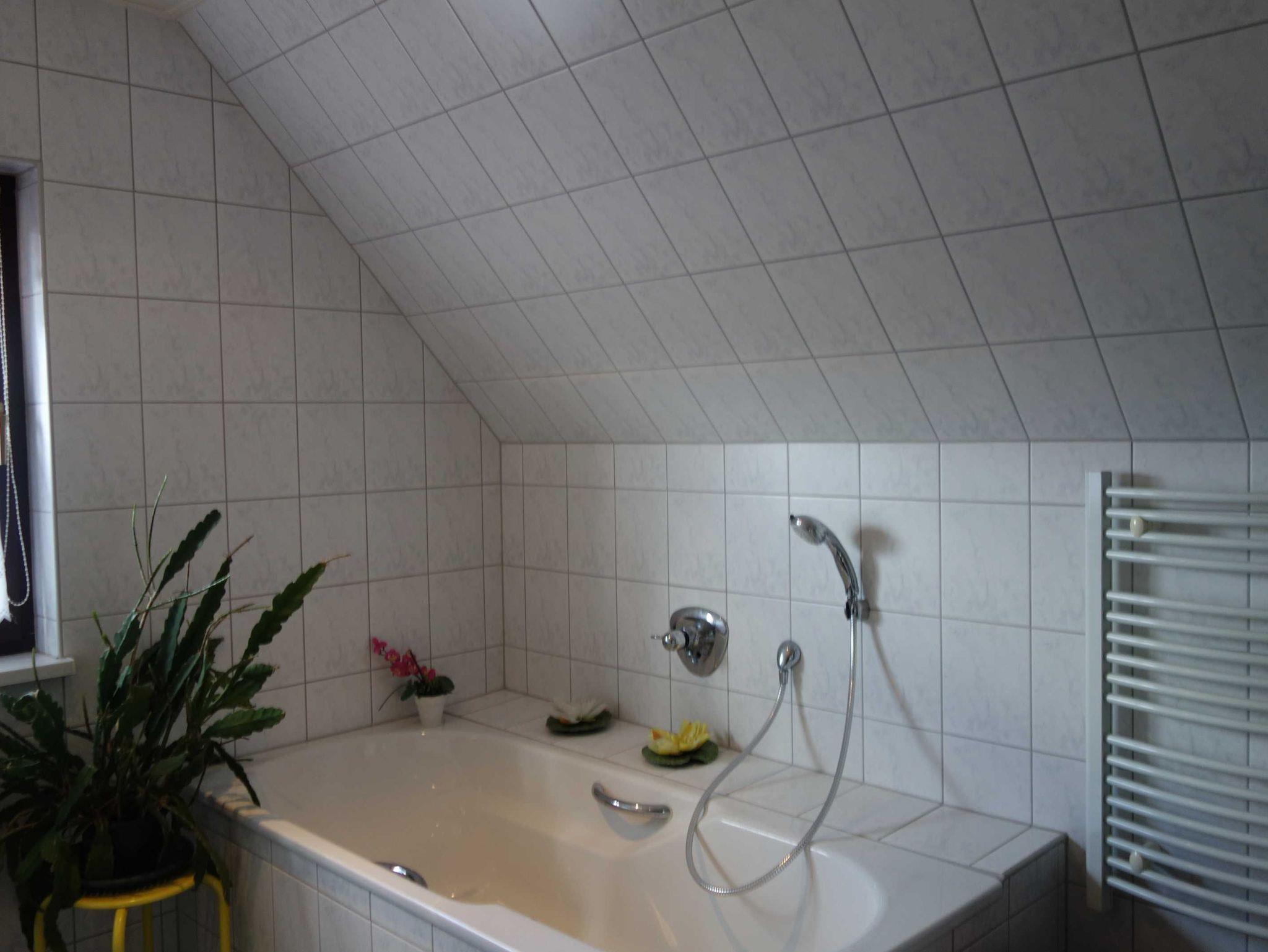 • 1 modernes Bad mit Badewanne, Dusche und WC im unteren Bereich