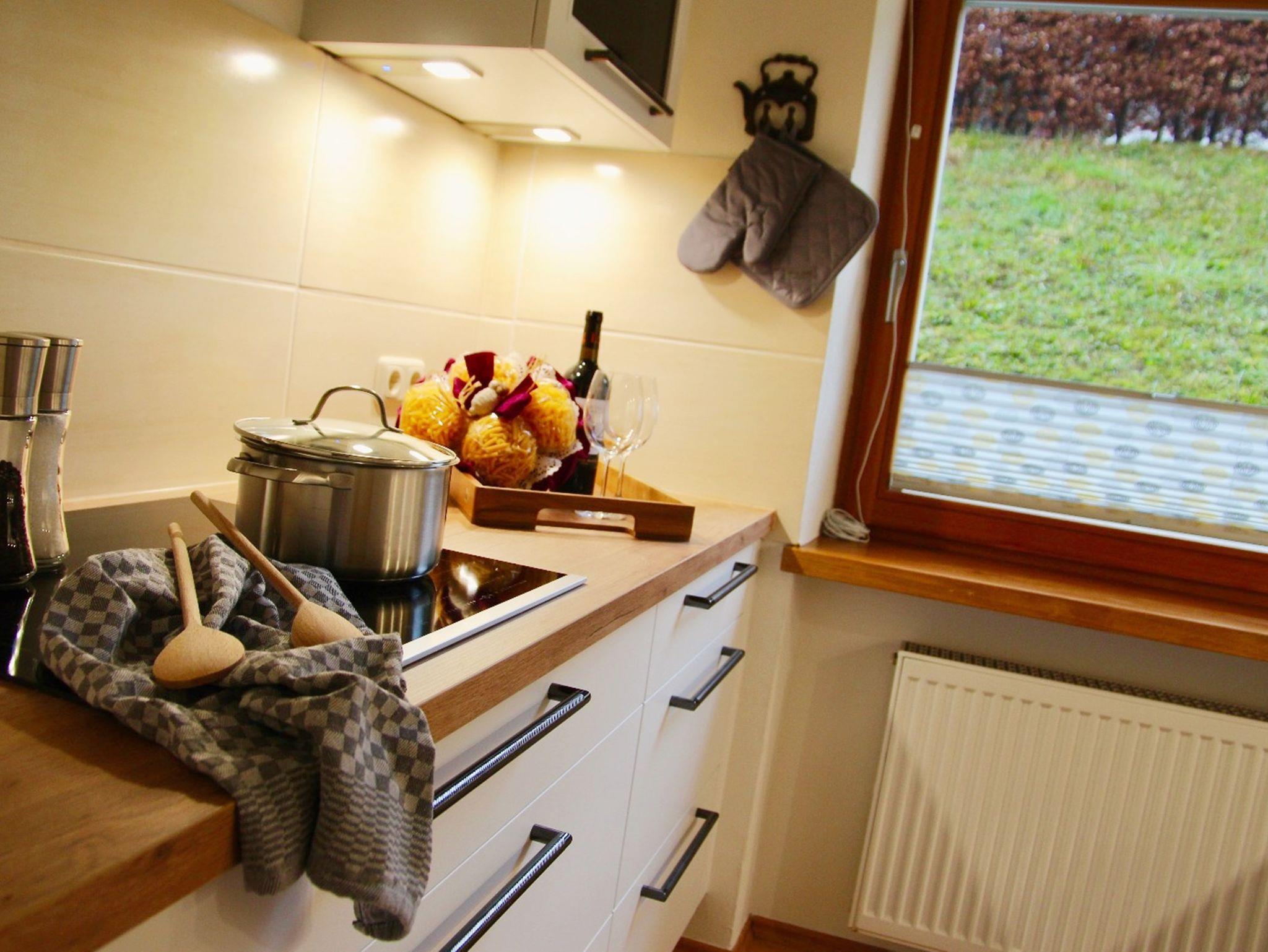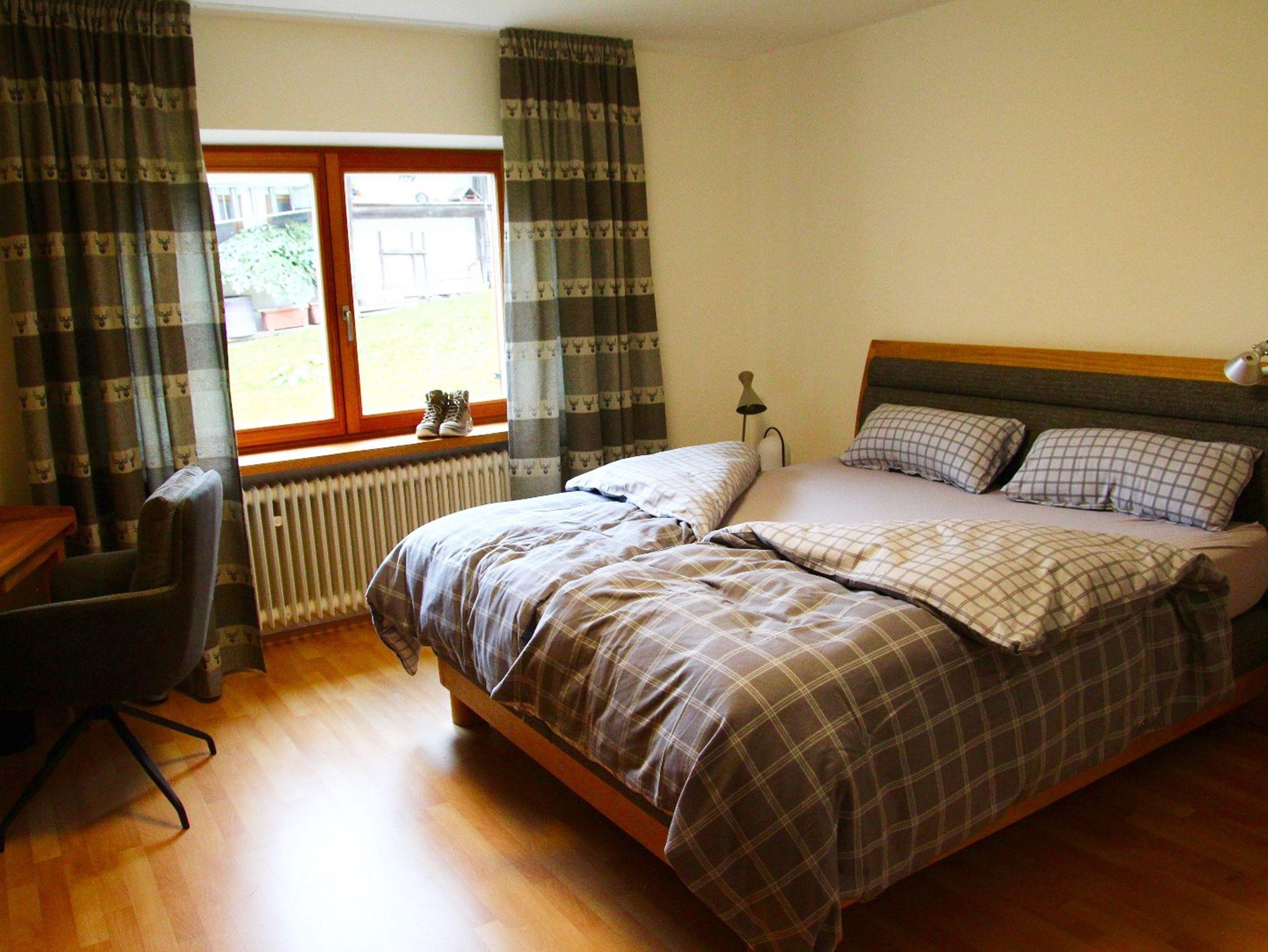 Die Ferienwohnung liegt im Erdgeschoß eines Zweifamilienhauses. Sie besteht aus drei Zimmern, Küche, Bad und einer Terrasse mit Gartenbenutzung. Ihnen stehen zwei Schlafzimmer mit je einem Boxspring Doppelbett zur Verfügung. Das größere Schlafzimmer ist zusätzlich mit einem Schreibtisch ausgestattet. Im Wohn/Esszimmer steht Ihnen eine Sitzgruppe für gemütliche Abende zur Verfügung. Ein Fernseher rundet das Angebot ab. Eine Essecke bietet Ihnen Platz für ein gemütliches Frühstück oder Essen. Die Küche ist voll ausgestattet. Auch an Kochgeschirr und Elektrokleingeräte ist gedacht. Bad und Toilette sind getrennt. Im Badezimmer befindet sich eine Badewanne mit Glasabtrennung, falls Sie lieber duschen. Ein großer Spiegelschrank bietet genügend Stauraum. Bettwäsche und Handtücher werden gestellt.