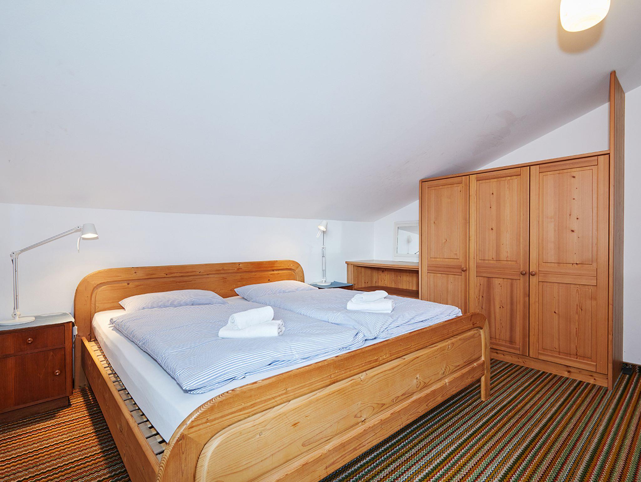 Das geräumige Wohnzimmer überzeugt mit gemütlicher Einrichtung und einem offenen Kamin und verspricht behagliche Stunden. Der Wohnraum verfügt zudem über einen Essbereich und direkten Zugang zum Südbalkon, welcher bei zum Verweilen einlädt und einen herrlichen Blick auf die umliegende Bergwelt gewährt. Die zwei separaten mit Doppelbetten ausgestatteten Schlafzimmer sorgen für einen ruhigen, erholsamen Schlaf und bieten ausreichend Stauraum. Die Küche ist mit Spülmaschine, Induktionsherd, Backofen, Wasserkocher, Kaffeemaschine und Wasserkocher ausgestattet und lässt keine Wünsche offen. Das Badezimmer verfügt über Dusche, WC und eine Badewanne.