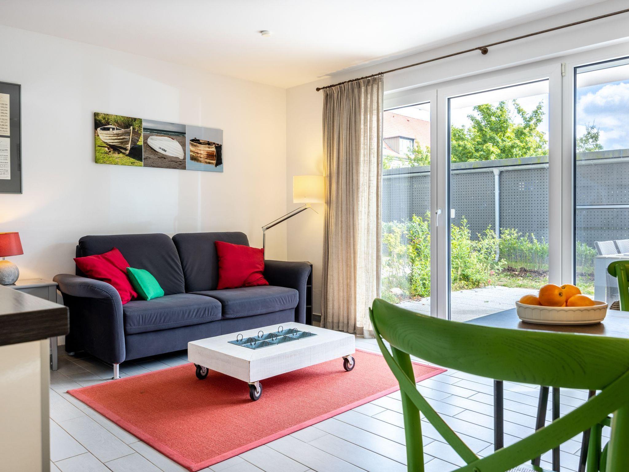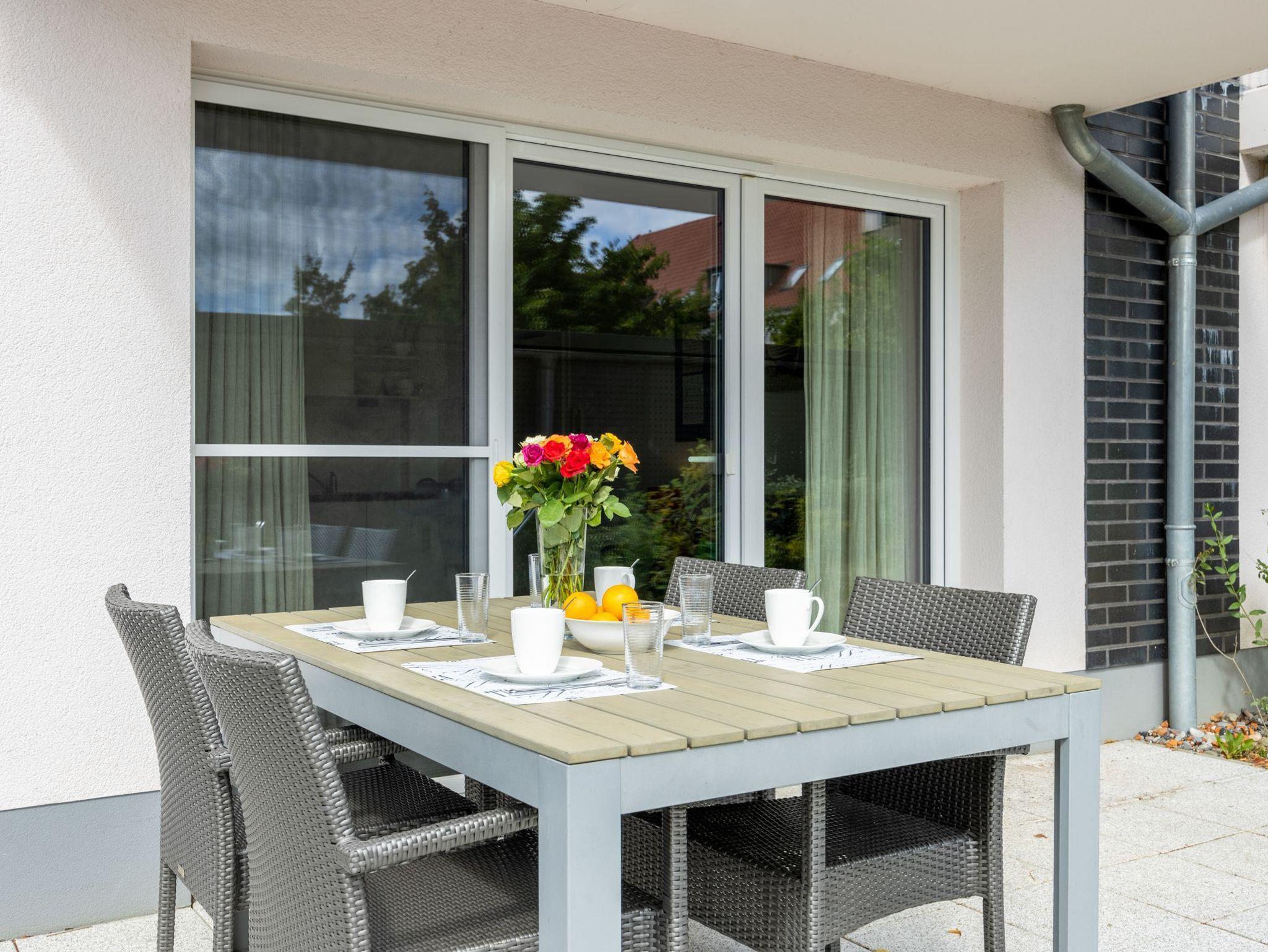 Helle Ferienwohnung Hummelflug nahe Ostseestrand in Rerik mit großer Südterrasse und barrierefreiem Zugang.