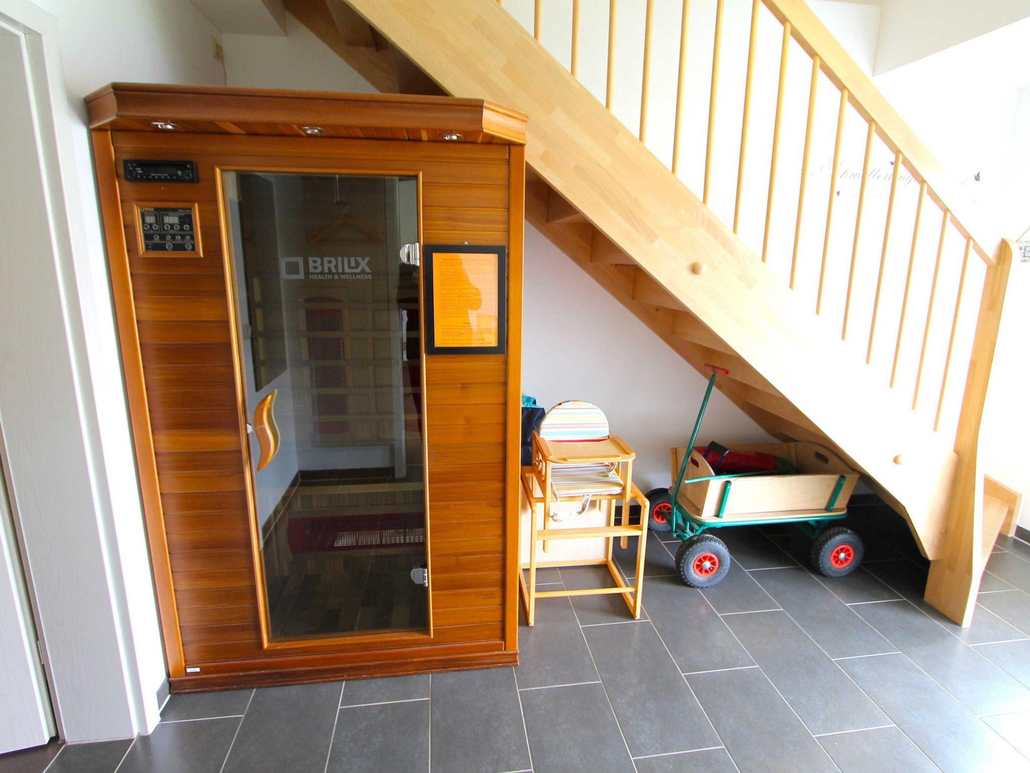 Zum Entspannen lädt eine Infrarot- Wärmekabine ein.