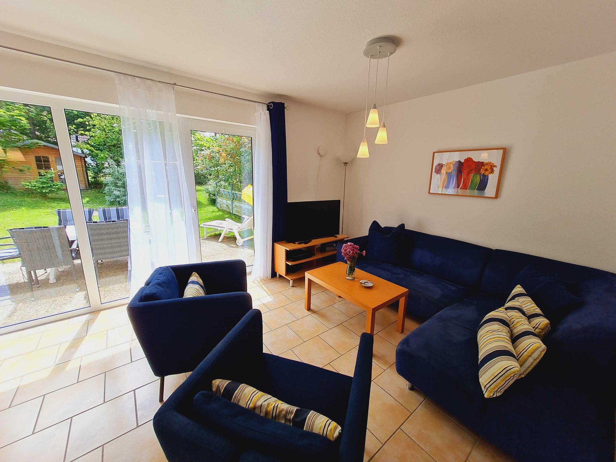 Genießen Sie eine gemütliche Doppelhaushälfte an der Ostsee mit Panoramablick, Garten und nur 5 Gehminuten zur Steilküste.