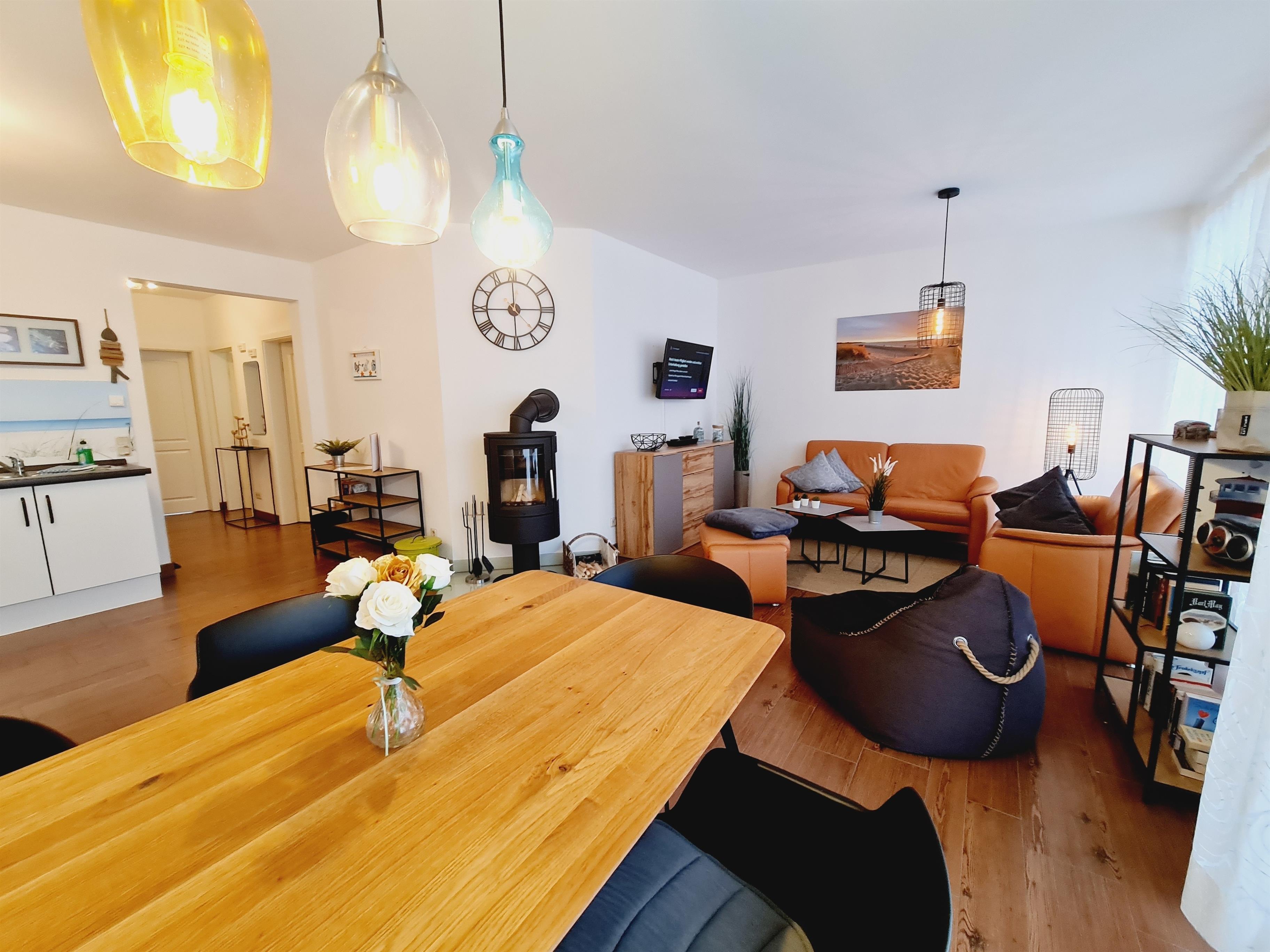 Die Ferienwohnung Strandweh bietet auf 75m² 2 Schlafzimmer, eine Terrasse, ein voll ausgestattetes Badezimmer so wie einen liebevoll und modernen eingerichteten Wohn/Essbereich.