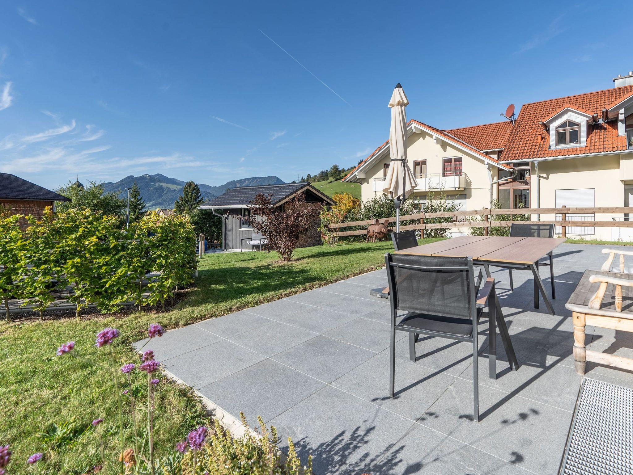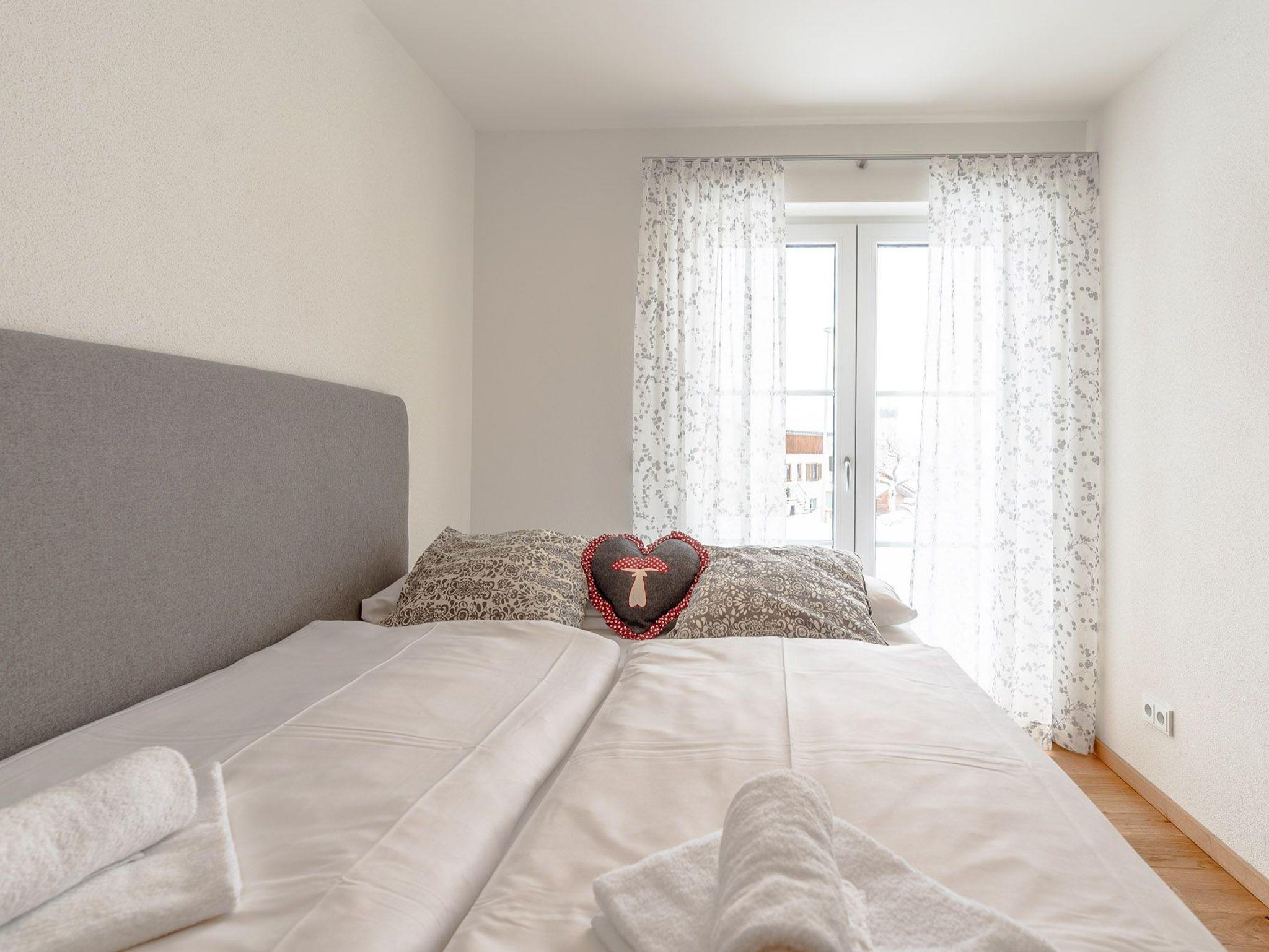 Die große Terrasse mit Süd-West Ausrichtung erreichen Sie vom Wohnbereich aus, der wunderschöne Blick in die Allgäuer Bergwelt wird Sie begeistern. Von hier aus können Sie einen erlebnisreichen Urlaubstag in Ruhe ausklingen lassen und sich erholen. Des weiteren verfügt die Ferienwohnung über zwei sehr schöne Schlafzimmer. Das Hauptschlafzimmer ist mit einem aus Zirbenholz gefertigten Doppelbett sowie einem großen aus Zirbenholz angefertigten Kleiderschrank ausgestattet. Das weitere Schlafzimmer besitzt ein bequemes Boxspringbett und ebenfalls ein aus Zirbenholz hergestellten Kleiderschrank.