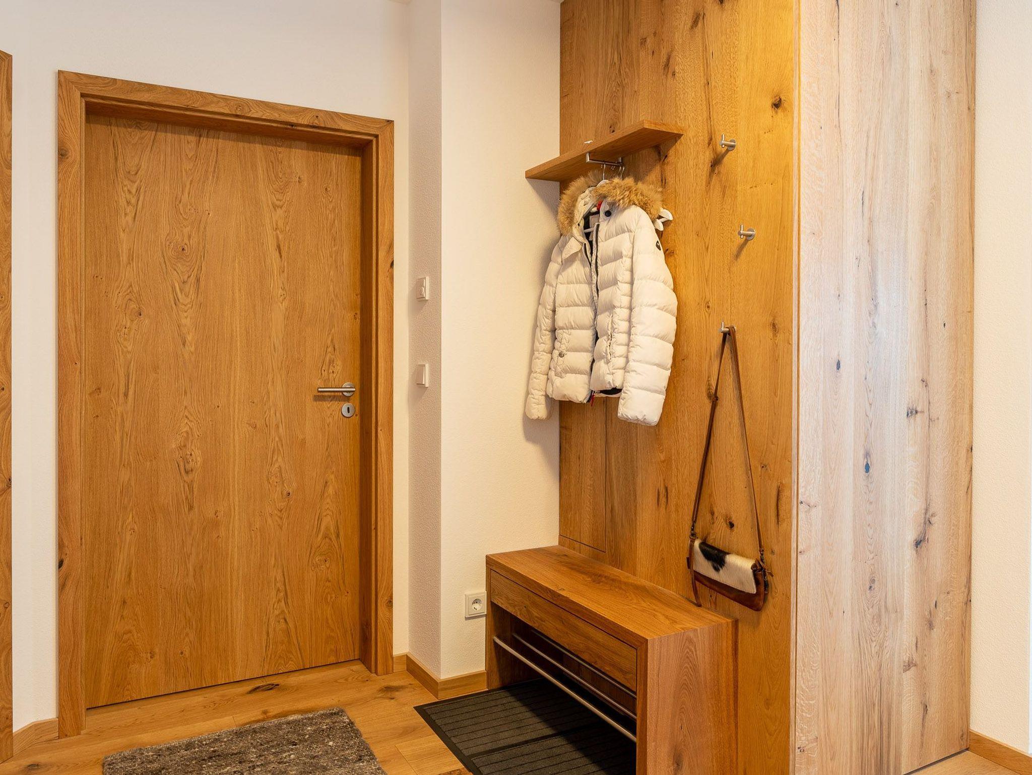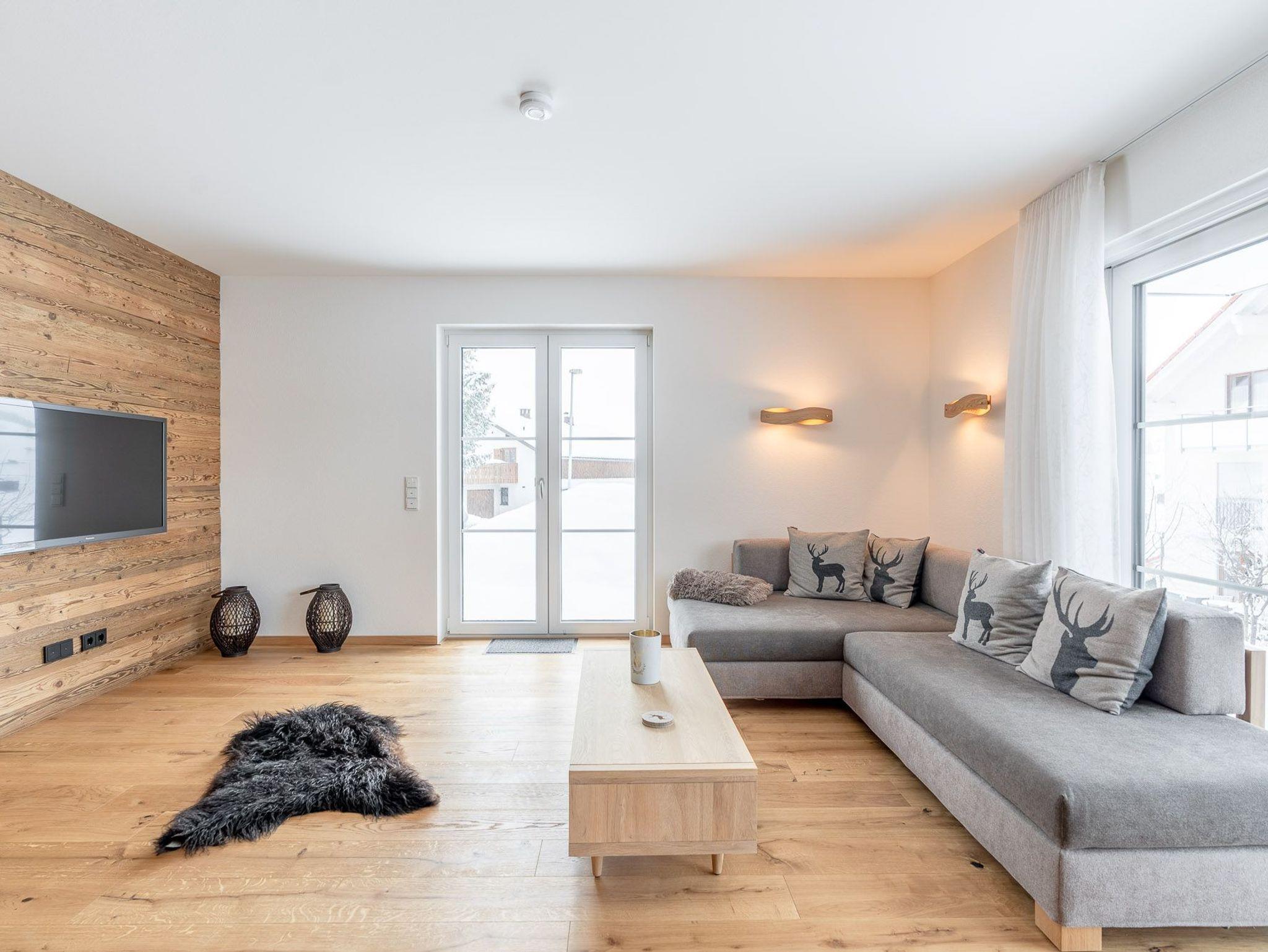 Verbringen Sie Ihren Urlaub in dieser neuen, hochwertig ausgestatteten Ferienwohnung im modernen Chalet Stil, die keine Wünsche offen lässt. Sie betreten die Wohnung über einen geräumigen Flur, in welchem sich eine Garderobe befindet. Von dort erreichen Sie das gemütlich gestaltete Wohn-Esszimmer mit integrierter hochwertiger Küche. Die Küche ist komplett ausgestattet und ermöglicht Ihnen auch im Urlaub, Ihre Familie und Freunde kulinarisch zu verwöhnen. Der große Esstisch bietet Ihnen genügend Platz für schöne gemeinsame Stunden.