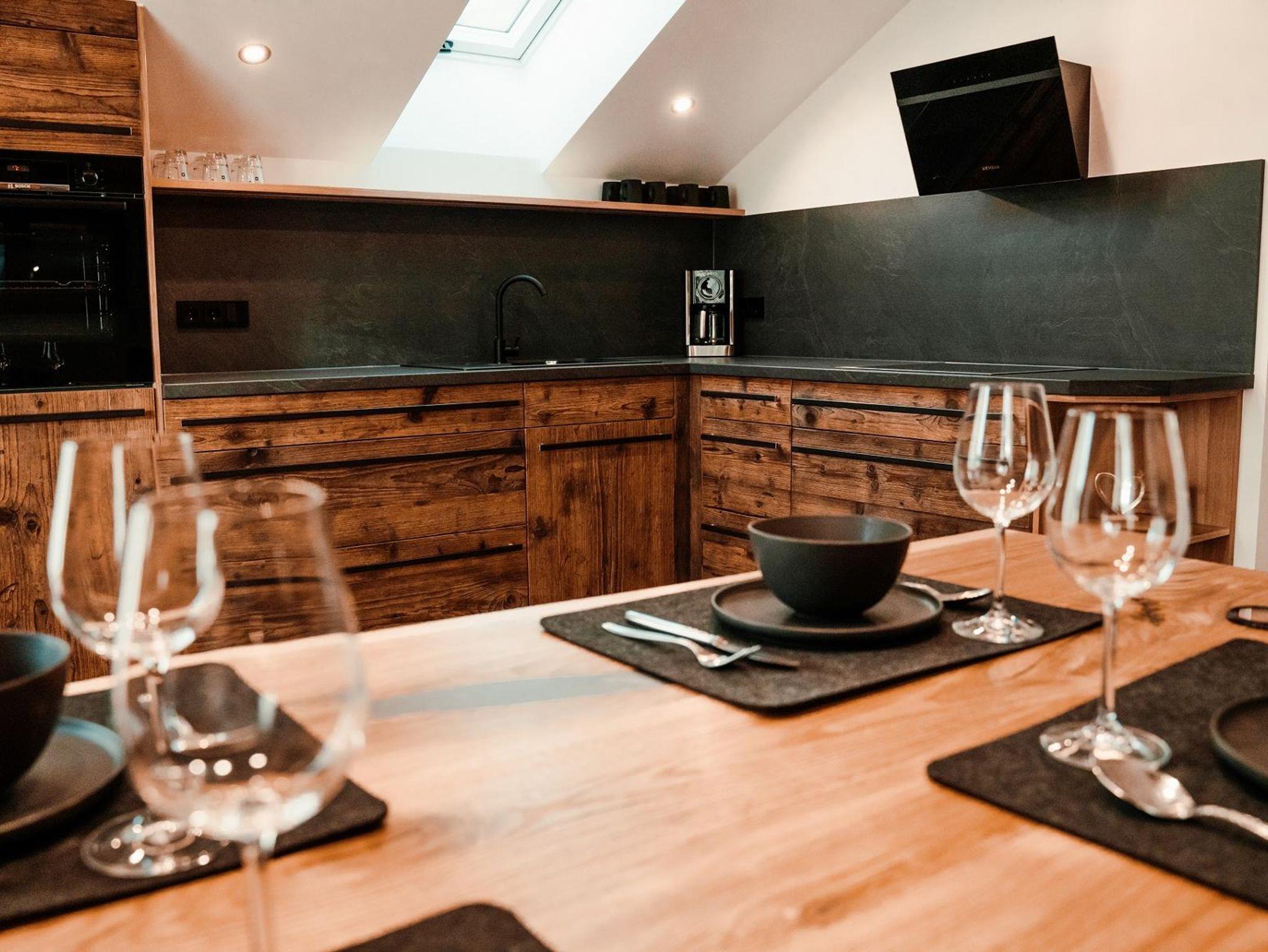 Es erwartet Sie ein offener Wohnbereich mit einer vollausgestatteten Küche aus