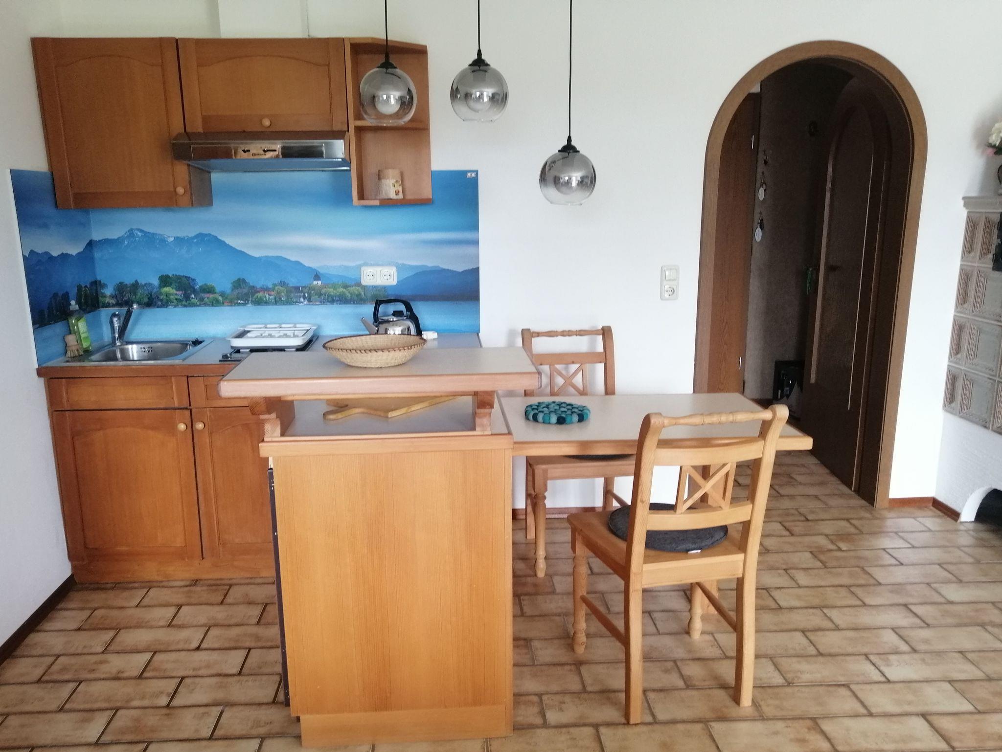 Küche mit Zweier-Ceranfeld und kompletter Küchenausstattung, bei Bedarf mit Sodastreamer und kleinem portablen Backofen