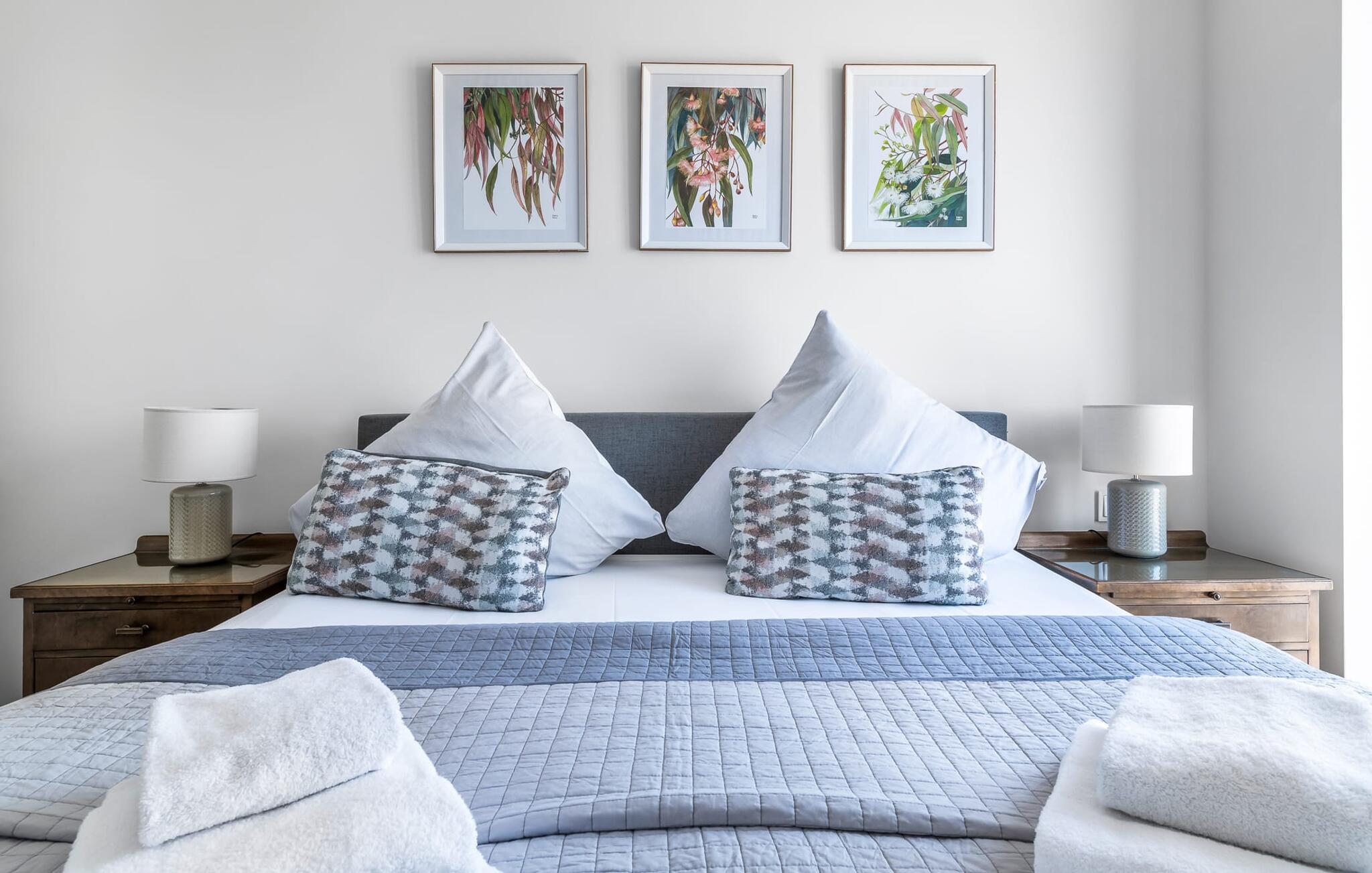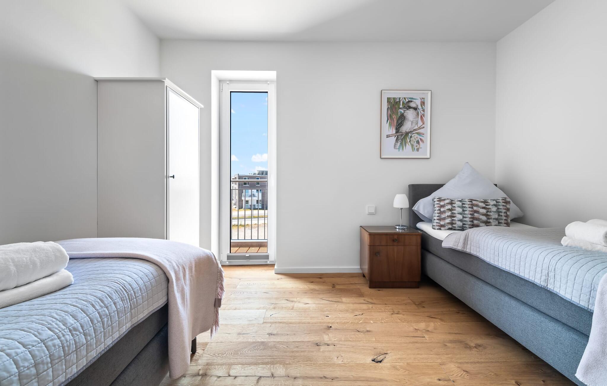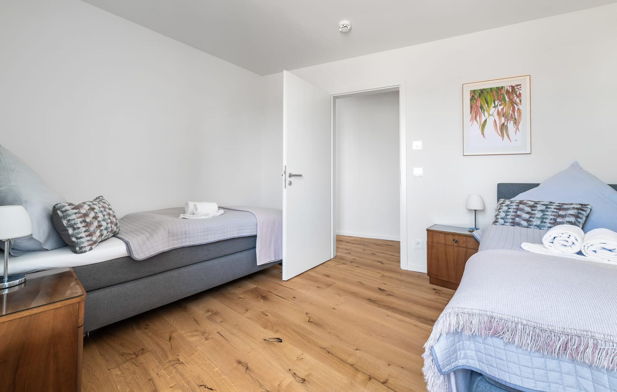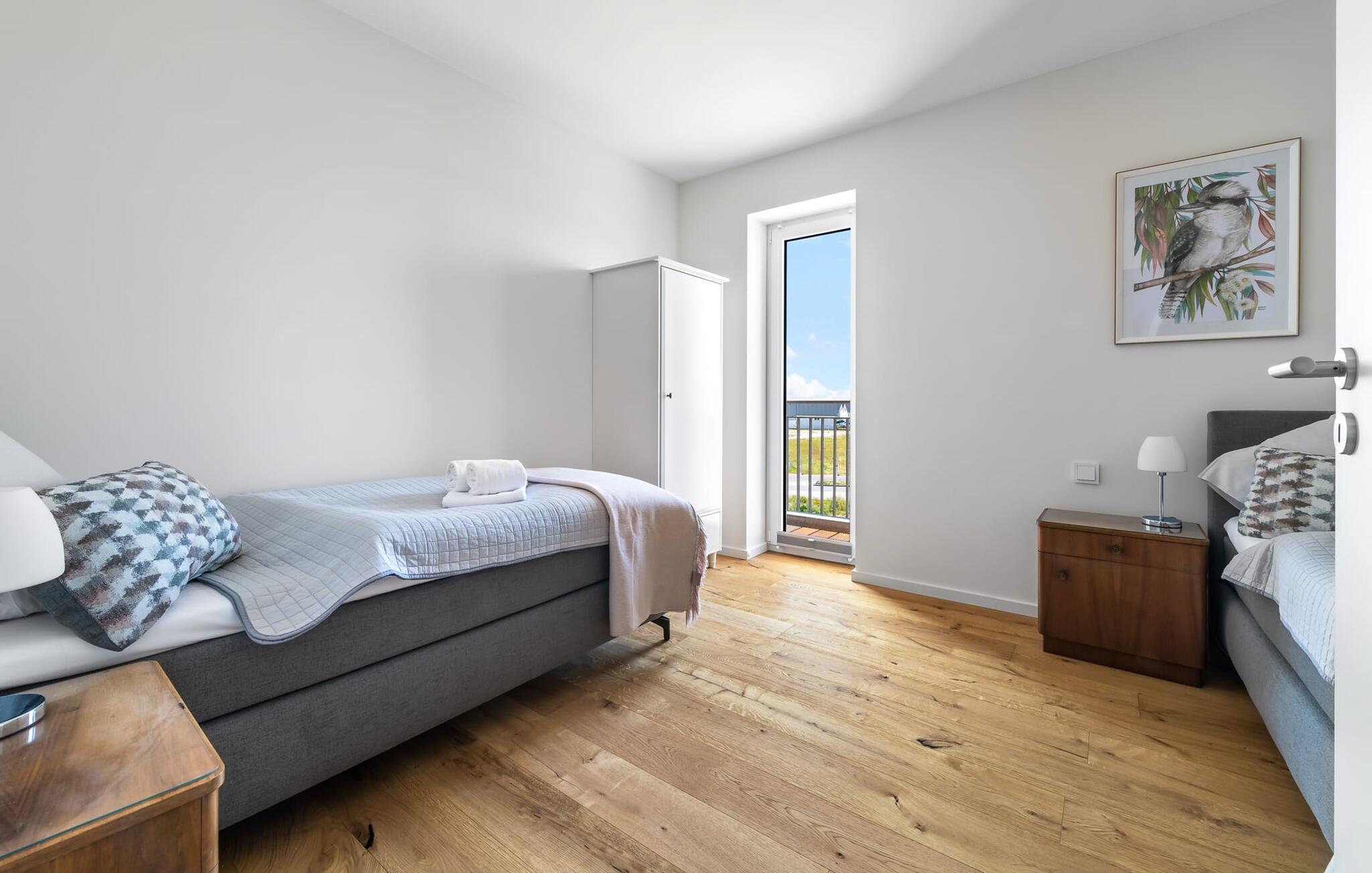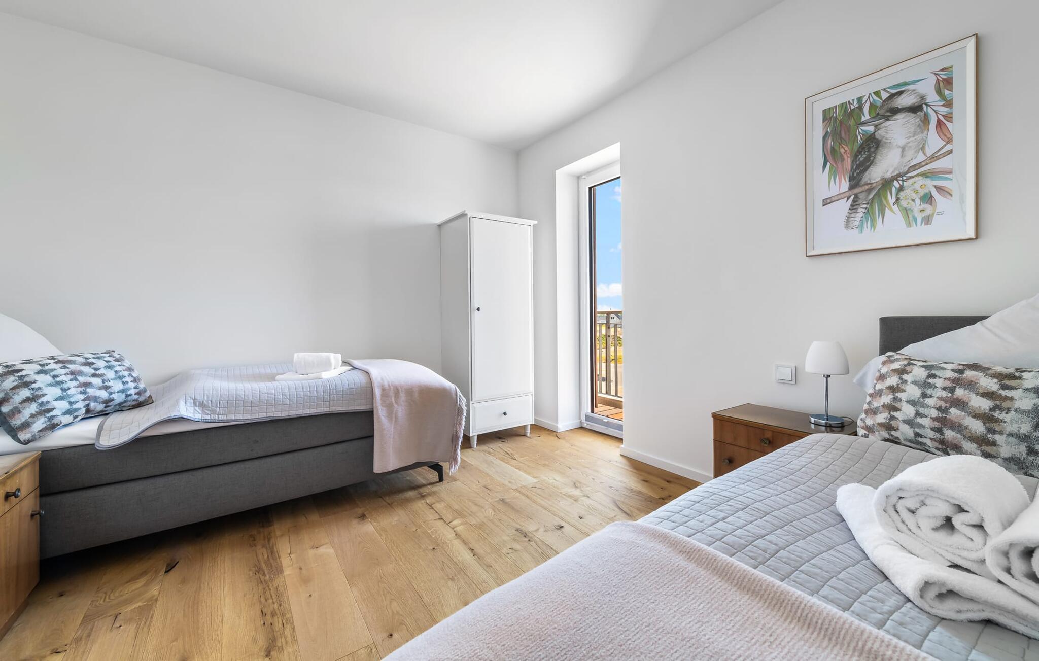 Ebenfalls hochwertig und modern eingerichtet sind die beiden Schlafzimmer. Sollte das Wetter mal zu grau für den Blick nach draußen sein, sorgen Einrichtungsakzente zum Thema Australien für Träume von Sommer, Sonne, Strand und Meer.