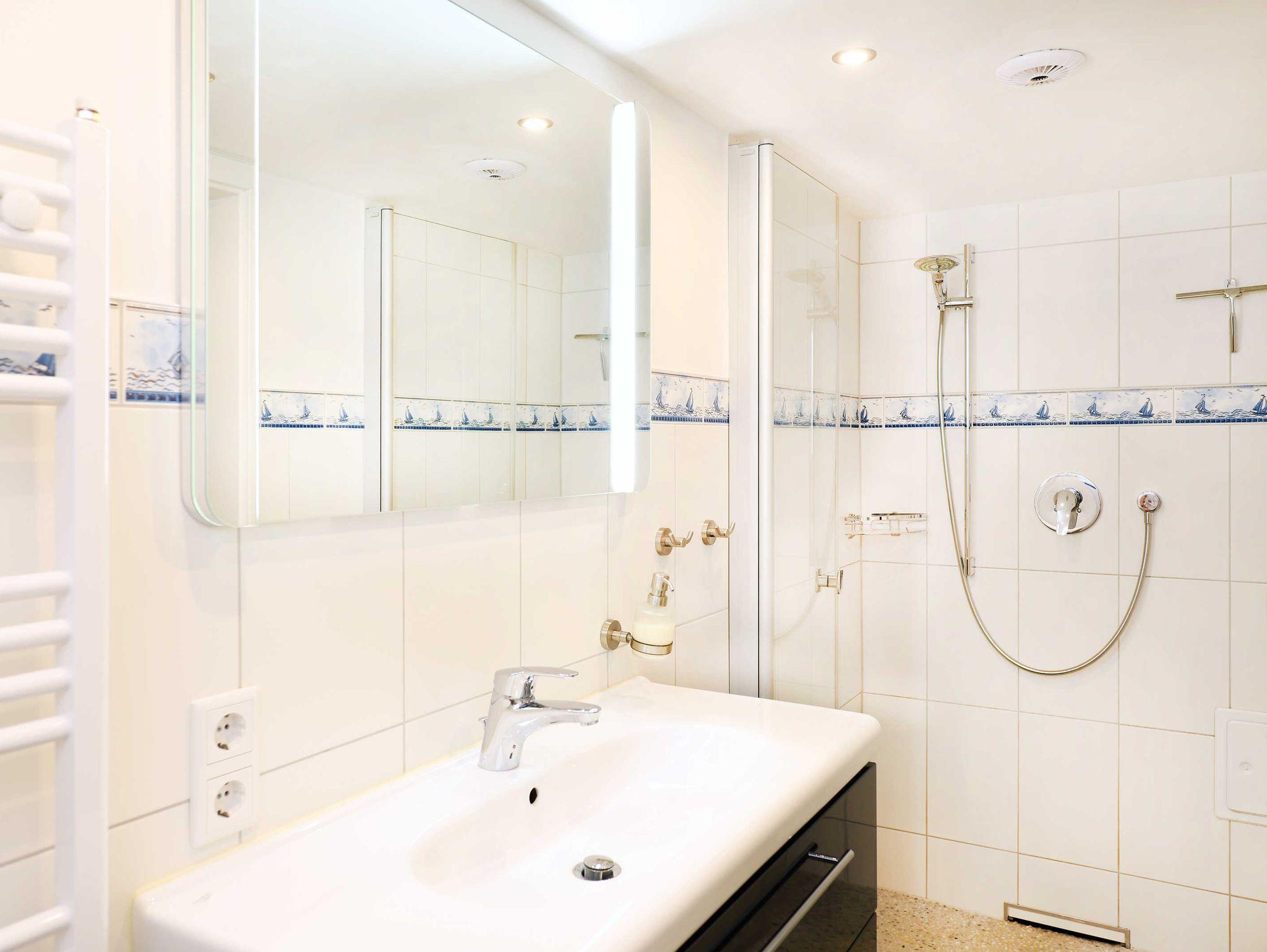 Untere (Souterrain) Etage Schlafzimmer und Bad mit Dusche und WC.