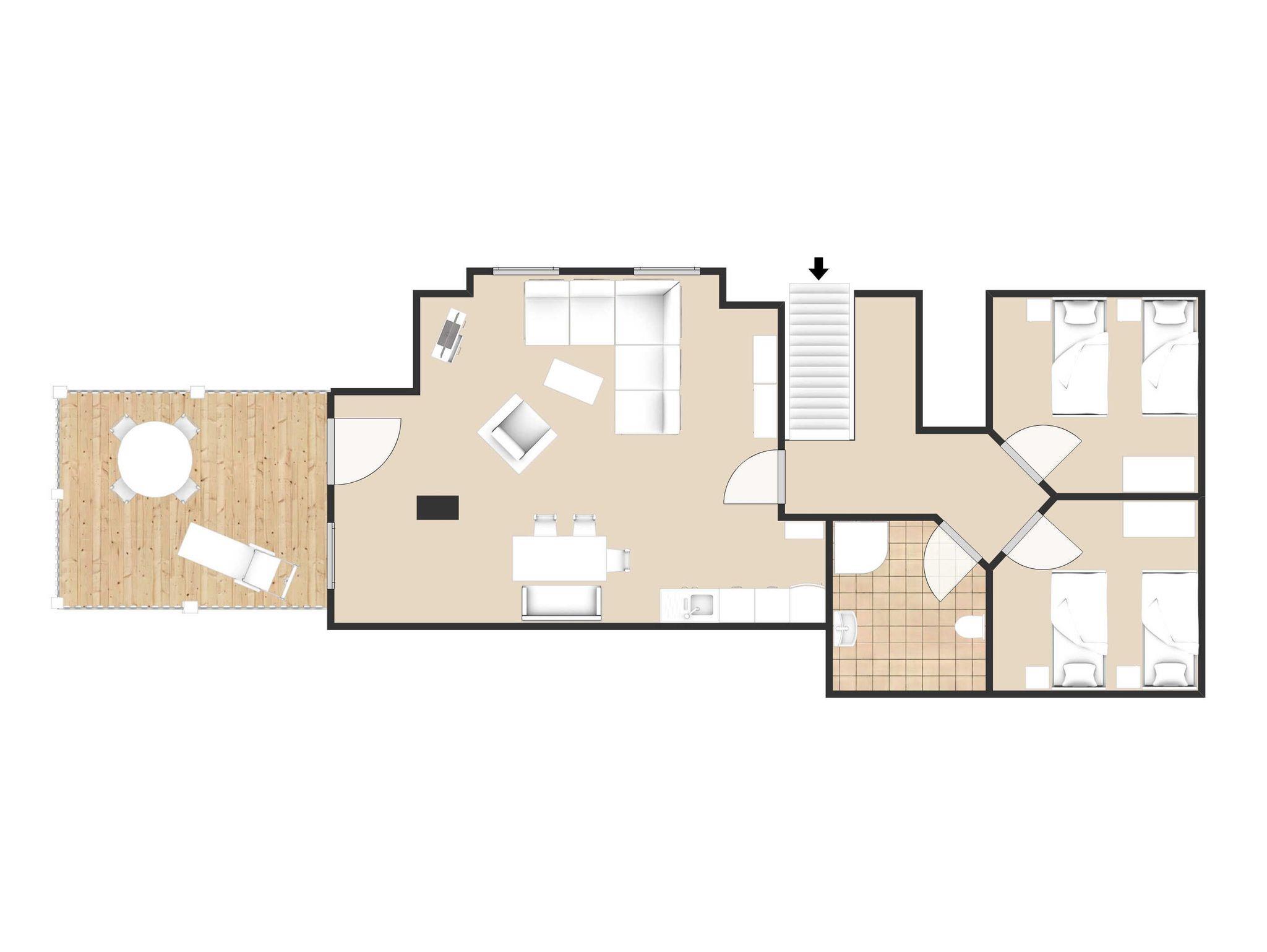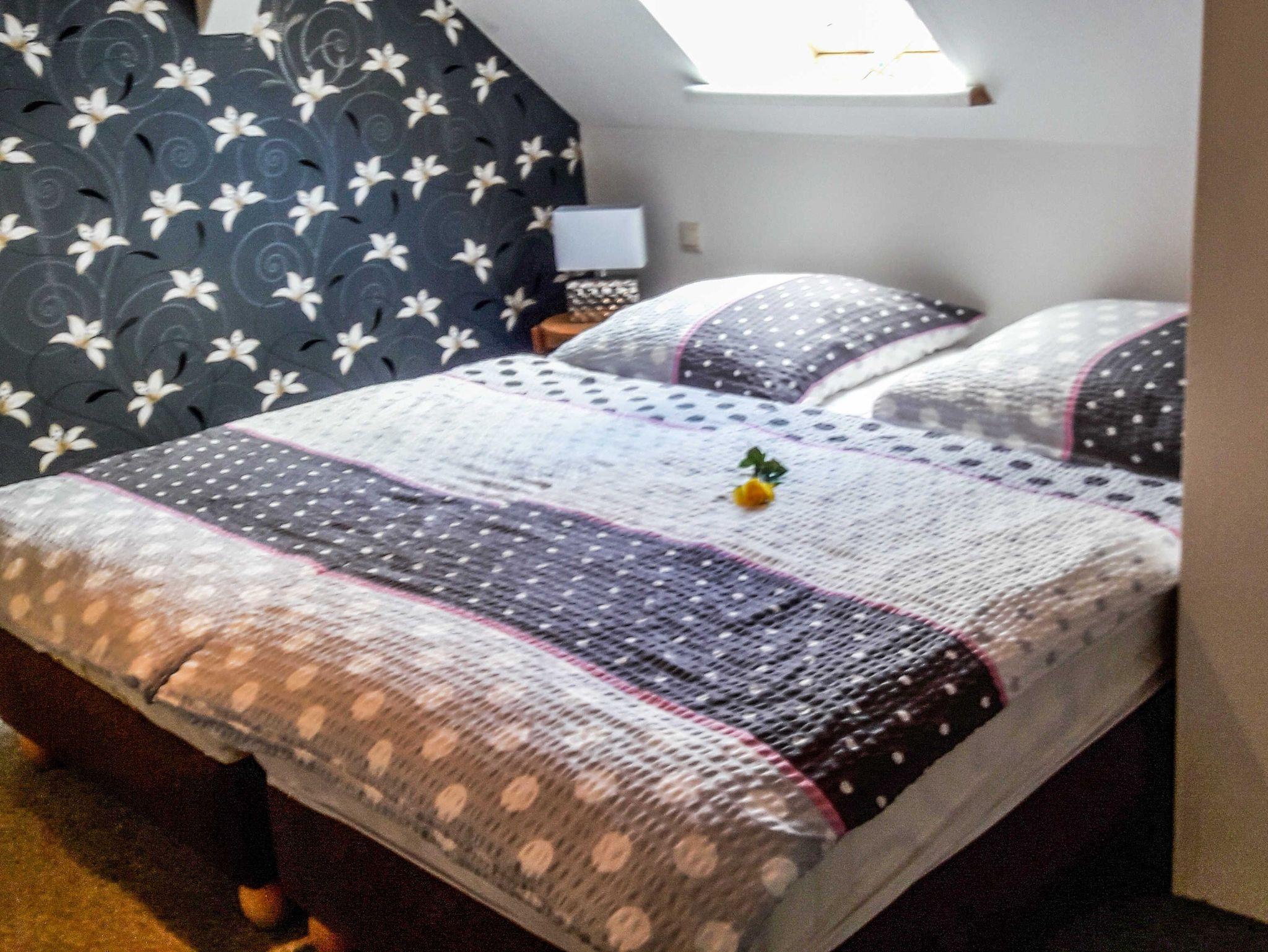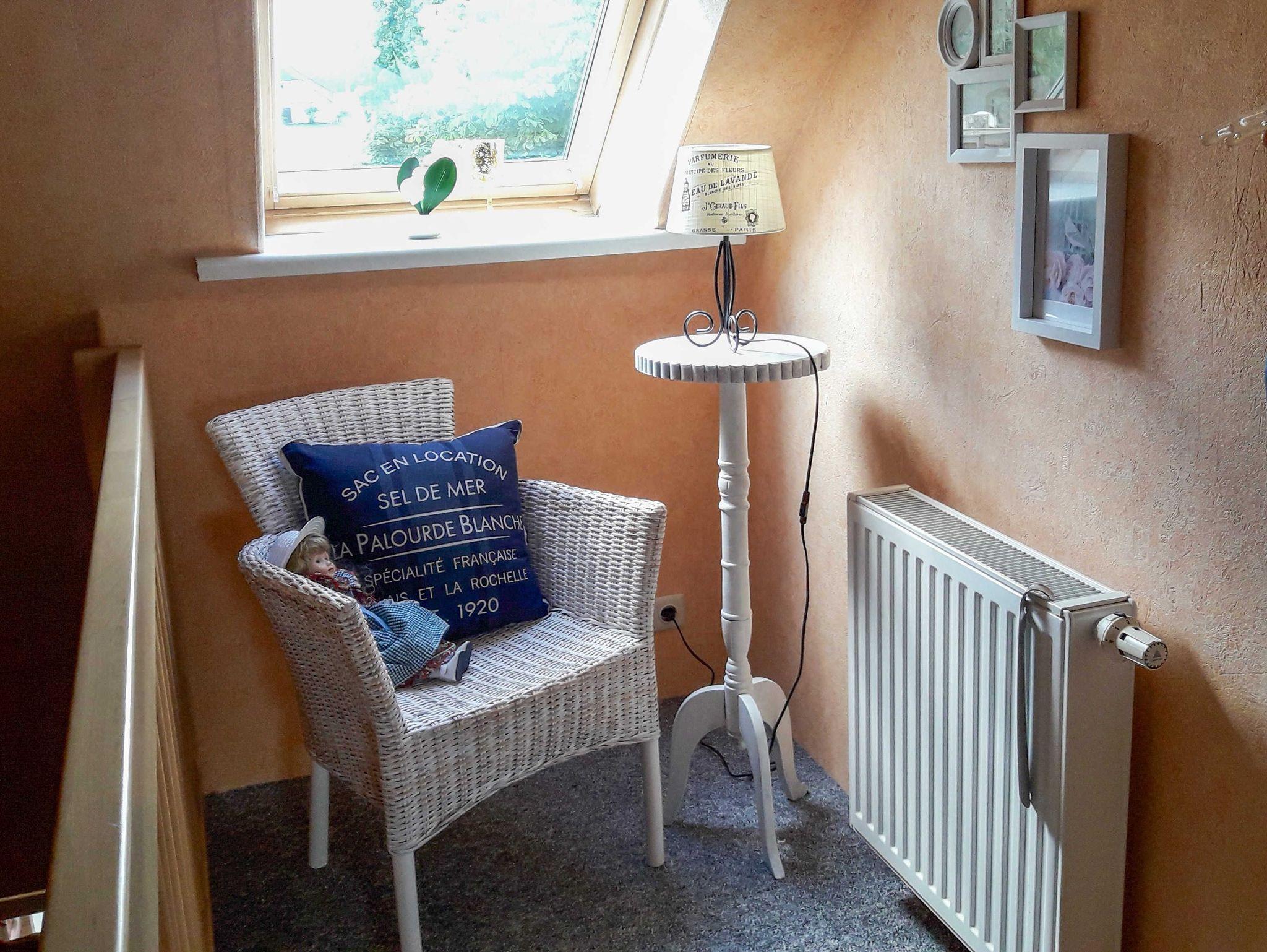 Die Ferienwohnung mit separatem Eingang befindet sich in der 1. Etage unseres Hauses und besteht aus 3 Zimmern mit dazugehörigem großen Balkon. Das Wohnzimmer mit integrierter Küche hat eine große Kuscheleckchouch zum Ausziehen, Sat-TV und Radio. Die Einbauküche ist ausgestattet mit E-Herd und Backofen, Kühl- und Gefrierschrank, Mikrowelle, Kaffeemaschine, Toaster etc. Eine Kiefernholzsitzgruppe (vier Stühle mit gemütlicher Bank) rundet den Essbereich ab. Das Bad verfügt über Dusche und WC.