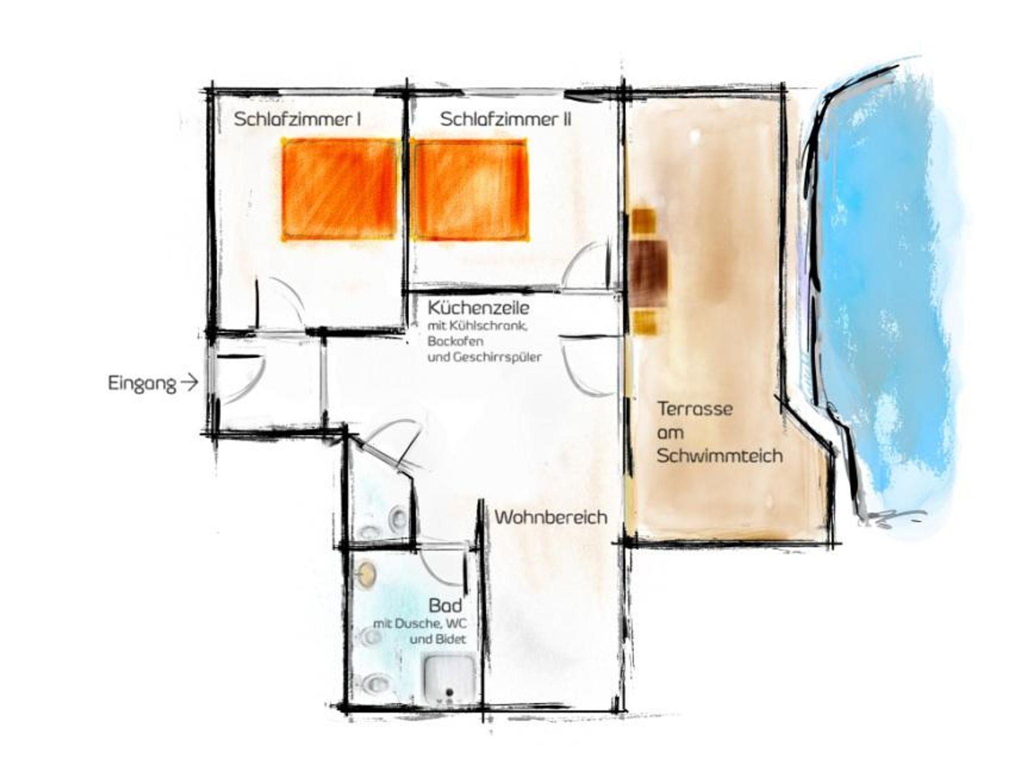 Diese exklusive 5 Sterne (DTV) Wohnung liegt am Sonnenhang Ruhpoldings mit Terrasse am hauseigenen Schwimmteich.Zwei einladende seperate Schlafzimmer sind mit jeweils einem Boxspringbett eingerichtet.Die Küche ist mit einem Herd, Kühlschrank inklusive Gefrierfach und Geschirrspülmaschine ausgestattet. Kleingeräte wie Toaster, Eierkocher, Wasserkocher und Pad- Kaffeemaschine sind ebenfalls vorhanden.Das Bad ist mit einer ebenerdigen Dusche mit Regenbrause ausgestattet. Ein Fön steht ebenfalls zur Verfügung.Im Wohnbereich finden sie einen 40 Zoll SAT-TV und Stereoanlage vor.Ein Hund kann auf Anfrage und für 5 EUR /Nacht mitgebracht werden.