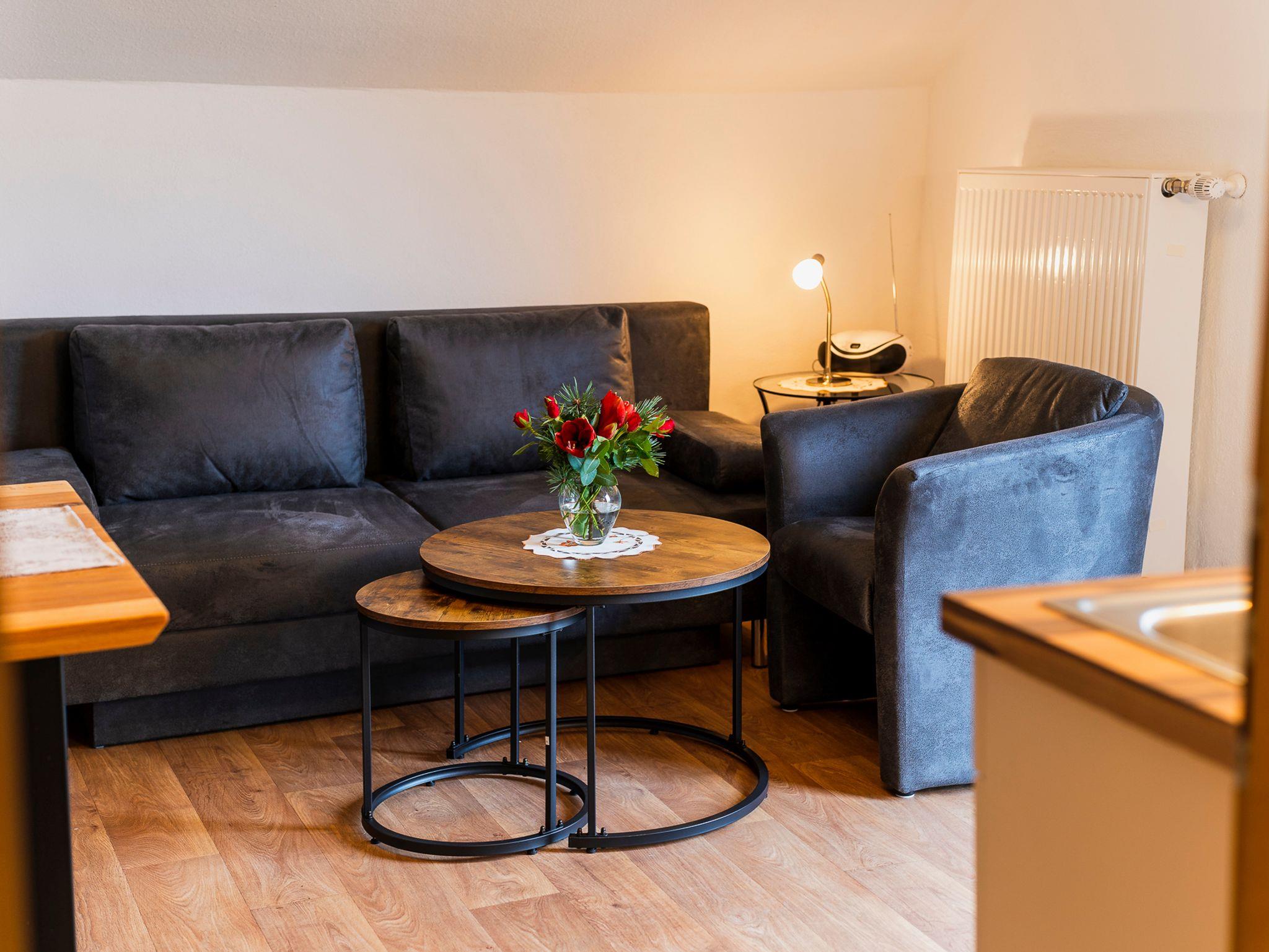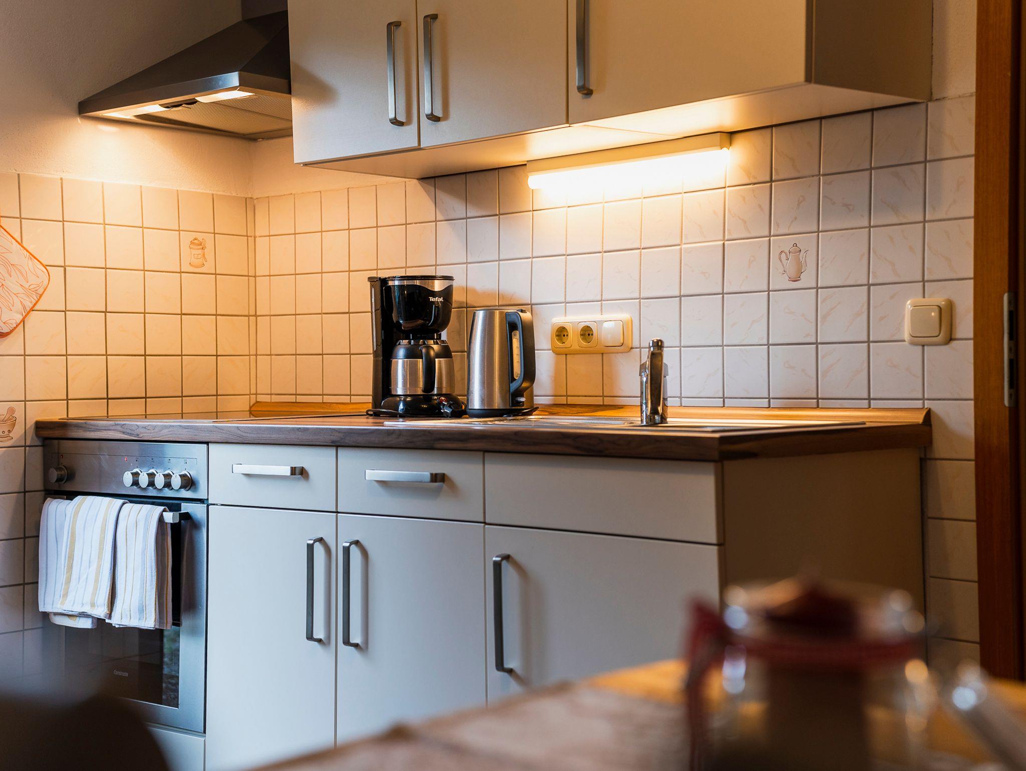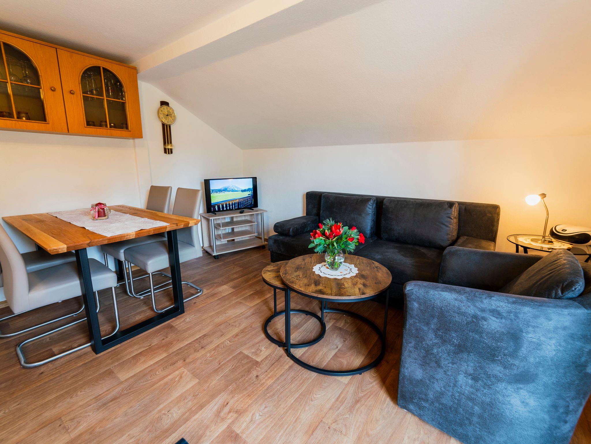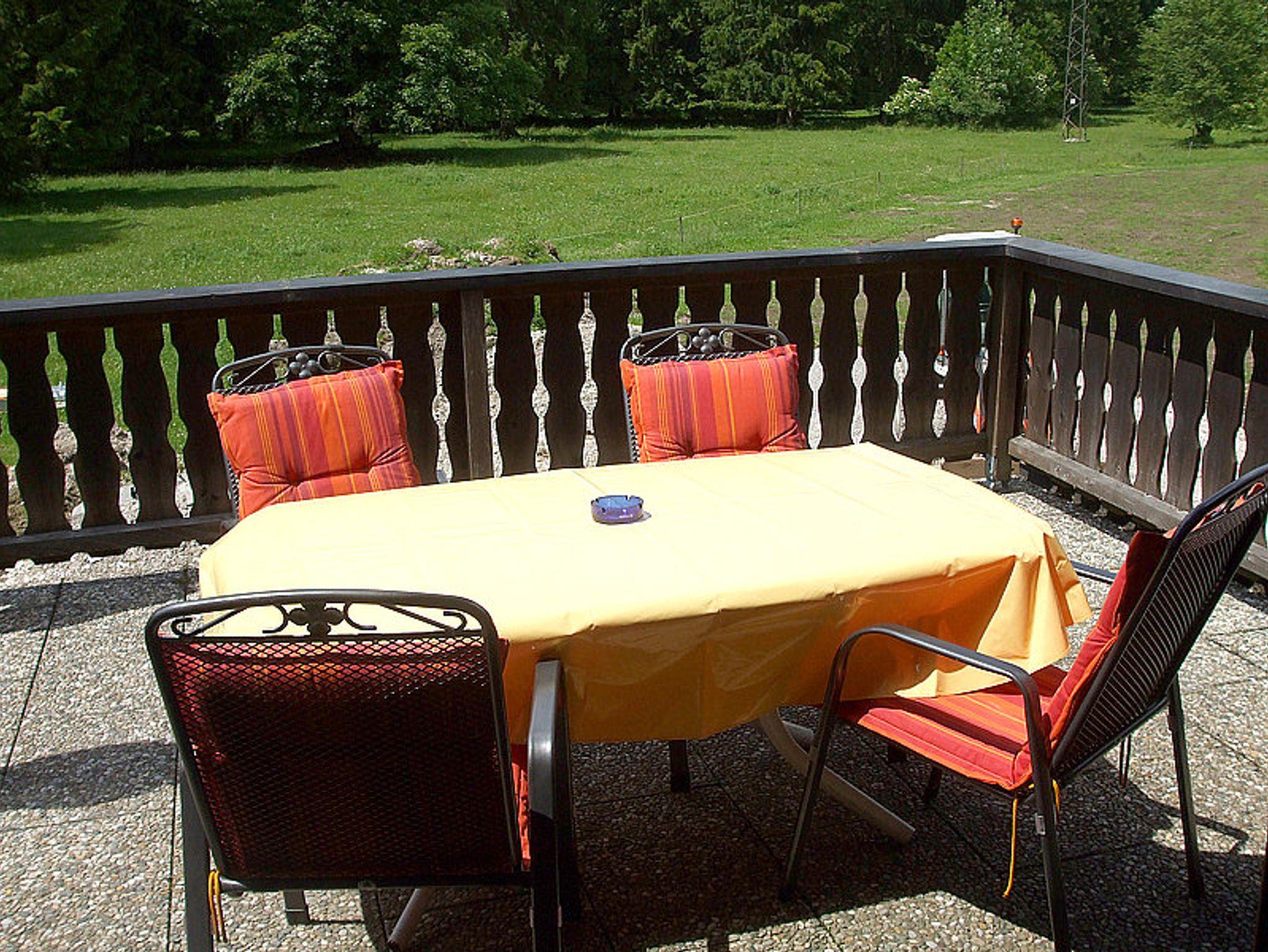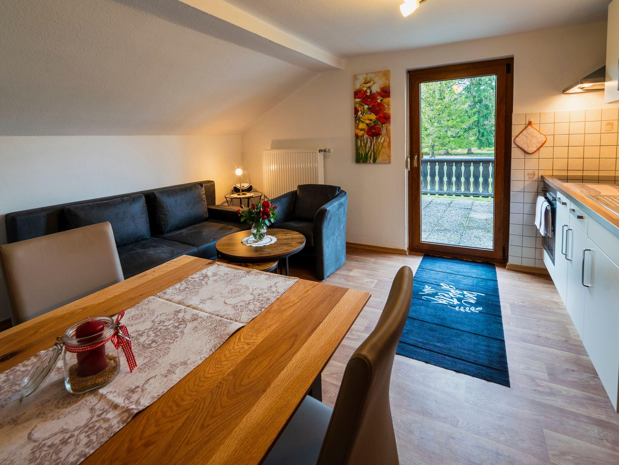Gemütliche Ferienwohnung mit Wohnküche, 2 Schlafzimmer, Dusche und zwei WCs, Balkon, Terrasse sowie Liegewiese.