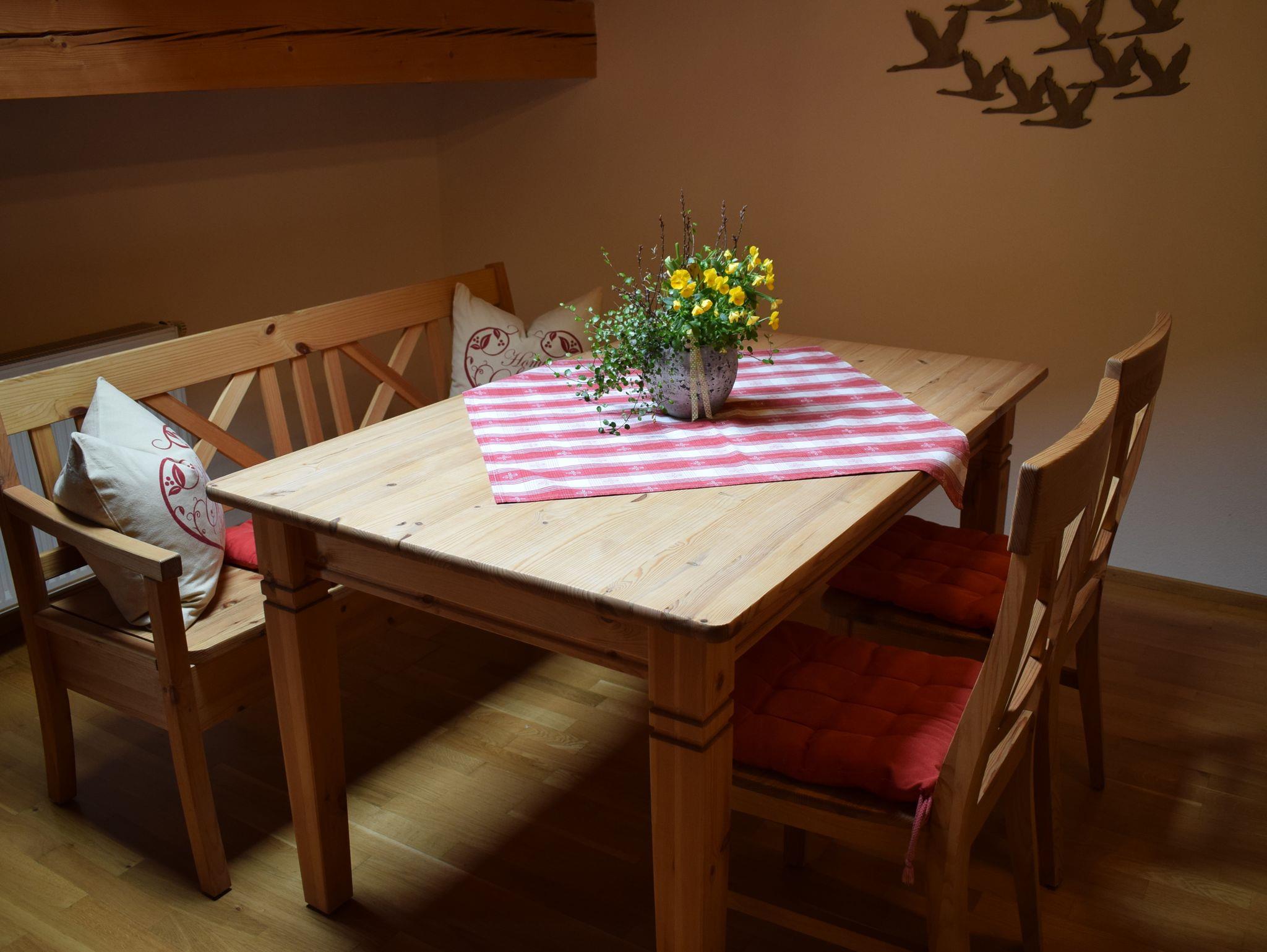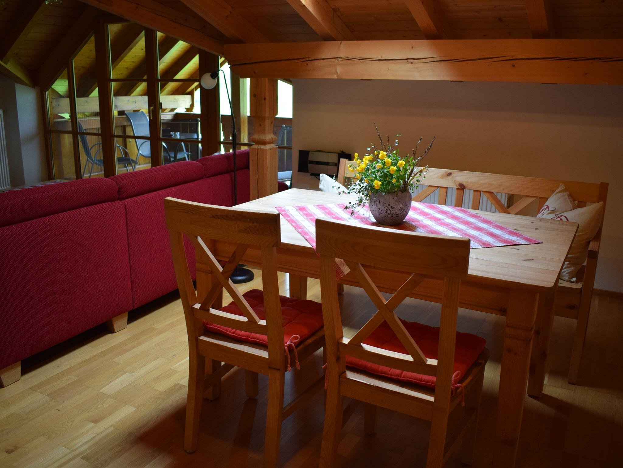 Unsere Ferienwohnung Froschsee ist im gemütlichen Landhausstil eingerichtet. Der grosse Wohnraum mit Polsterecke, sowie der Südbalkon mit herrlichem Bergblick wird Sie begeistern. Die Küche ist mit einem Geschirrspüler, Backofen, 4 Kochflächen, Kühlschrank mit Gefrierfach, Kaffeemaschine u.v.m. ausgestattet. Sehen sie selbst.