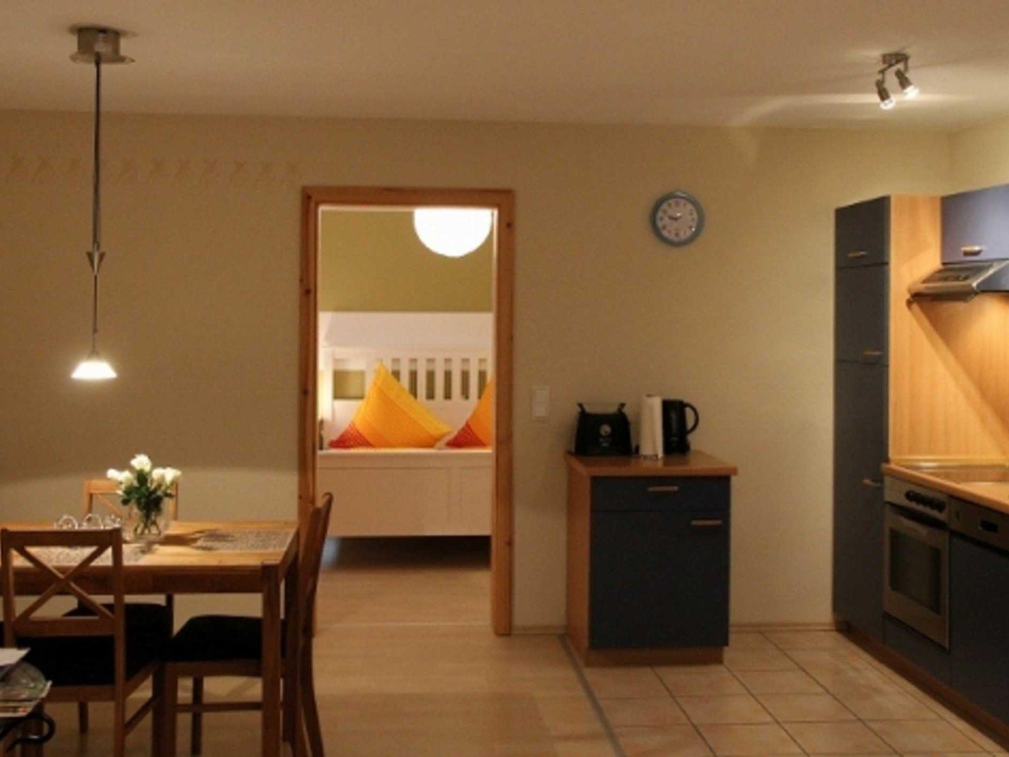 Die Ferienwohnung An der Runz (Souterrain 50 qm) besteht aus einem Schlafraum mit einem Doppelbett und einem Etagenbett. Die Wohnküche ist mit Cerankochfeld mit Backherd, großem Kühlschrank (inkl. Gefrierfach), Spülmaschine, einer Kaffeepadmaschine, Wasserkocher und Toaster sehr gut ausgestattet. Im Wohnbereich befindet sich außer einem Esstisch noch eine Couch, die auch als Schlafcouch verwendet werden kann. Bettwäsche, Hand- und Geschirrtücher sind in unserer Ferienwohnung inklusive. Für unsere Gäste steht kostenloses WLAN zur Verfügung. Vor Ort fällt eine Kurtaxe in Höhe von 1,00 EUR pro Person pro Tag an. Kinder von 0-11 Jahren zahlen keine Kurtaxe.