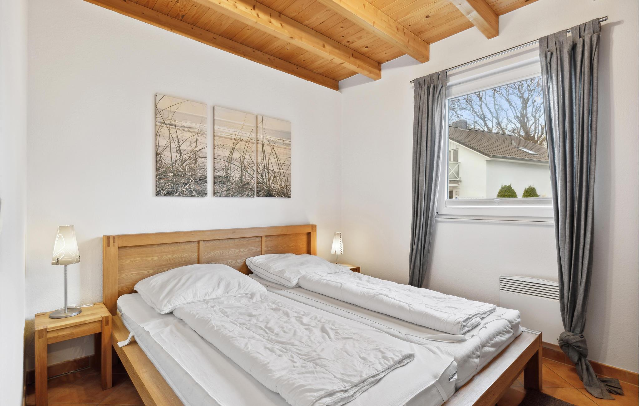 Vom Wohn/Essbereich (mit offener Küche und Kaminofen) erreicht man über eine Treppe die breite Galerie mit einem zweiten, großzügigen Wohnbereich (22 m²). Von hier aus können Sie eine Panorama-Aussicht über die Ostsee genießen. Im Erdgeschoss befinden sich zwei Schlafzimmer und zwei Bäder. Auf der Galerie befindet sich ein zusätzliches Doppelbett. Das Haus verfügt zudem über einen Balkon sowie eine große Terrasse mit Gartenmöbeln und eigenem Grill.