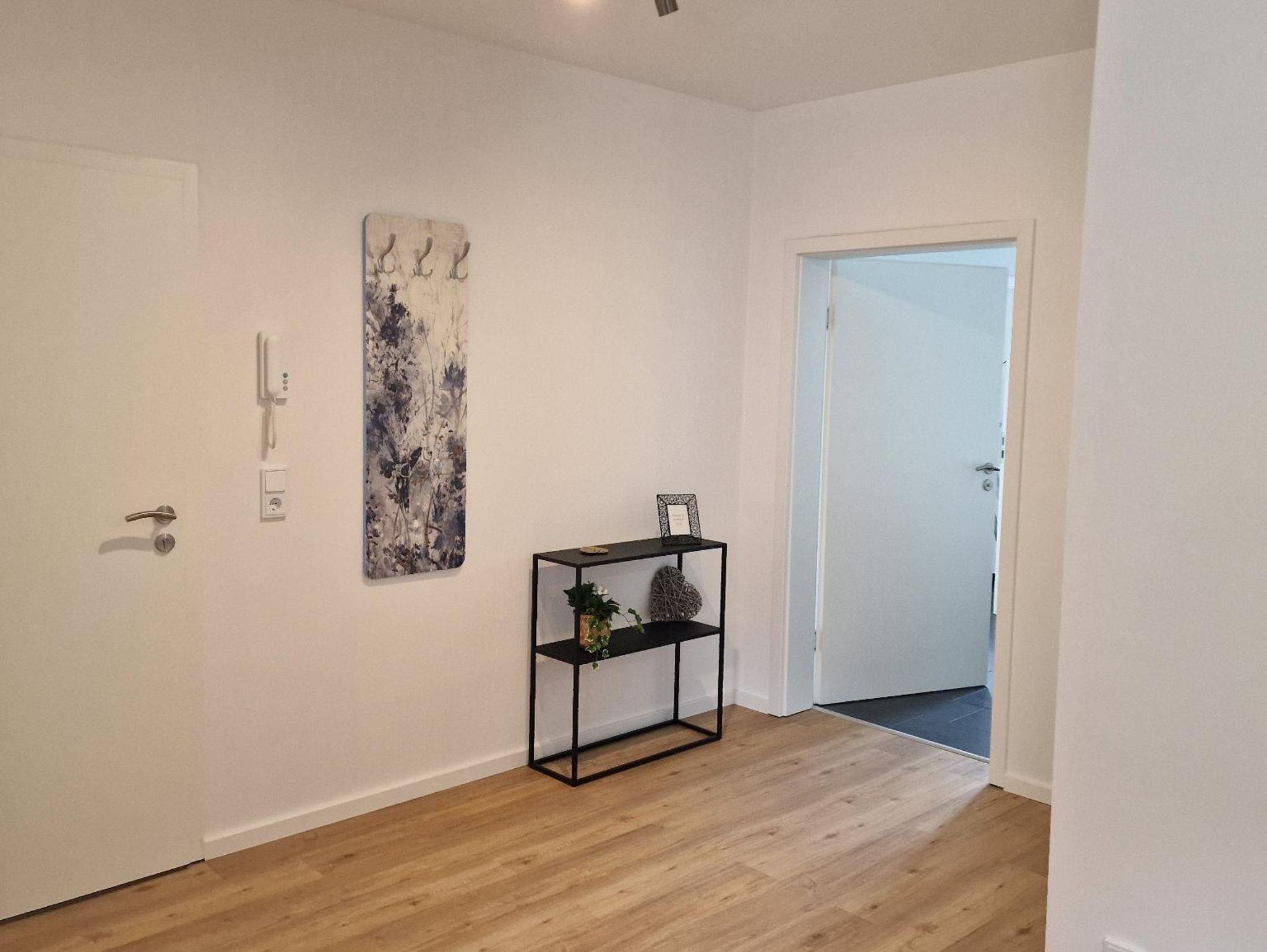 Diese Nichtraucher-Deluxe-Neubauwohnung im Erdgeschoss wurde im Januar 2024 fertig gestellt und verfügt über eine moderne Ausstattung mit einem Doppelschlafzimmer, einer Terrasse, einem großen Wohn-, Ess- und Küchenbereich und einem Badezimmer mit ebenerdiger Dusche. Sowie einem Fahrradständer vor dem Haus.