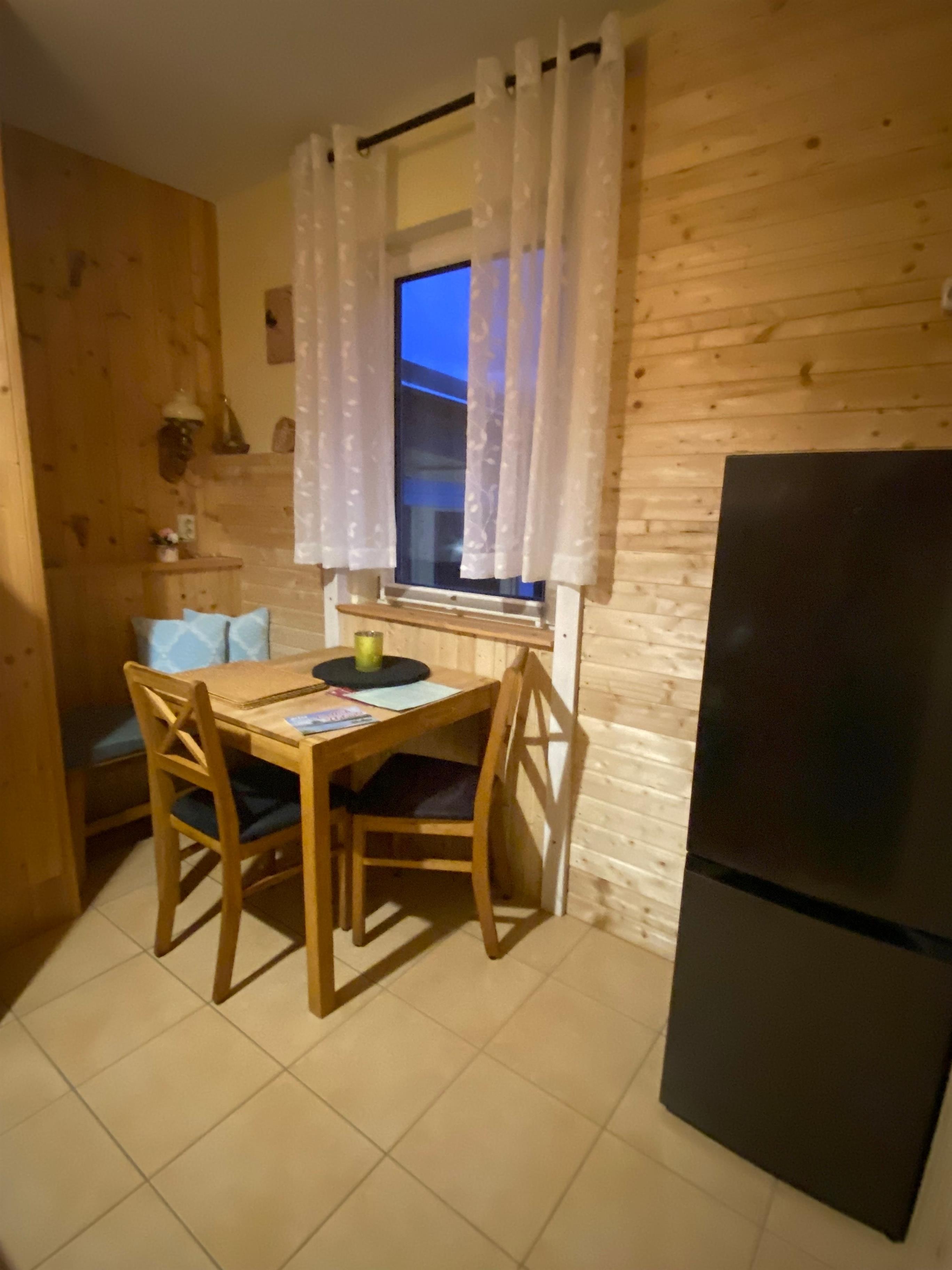 Unsere 43qm große 2,5 Raum-Wohnung bietet Ihnen viel Platz für Ihren wohlverdienten Urlaub. Der Wohn- und Essbereich mit Veranda bietet ausreichend Sitzmöglichkeiten mit Fachbild-SAT-TV, Radio und WLAN. Die große Wohnküche mit Küchenzeile und dem gemütlichen Esstisch lassen jeden Morgen gemütlich starten. Im Schlafzimmer steht für Ihren geruhsamen Schlaf ein großes Doppelbett (180 x 200 Meter) mit verstellbaren Lattenrosten bereit. Hier ist ein Schlafsessel von Wohnidee der als Schlafgelegenheit ( vorher angeben) umfunktioniert werden kann. Dieser hat eine Liegefläche von 80 x 190 Meter. Die voll ausgestattete Küchenzeile (Kühlschrank mit Gefrierfach, Herd mit 2 Platten, Multifunktionsbackofen mit Grill, Mikrowelle, ist neben Kaffeemaschine und Kapselmaschine (Dulco Gusto), Toaster und Wasserkocher somit gut ausgestattet. Eine eigene Terrasse vor der Wohnung lädt ebenfalls zum sitzen ein. Das Dusch-/Badezimmer ist modern eingerichtet. Der Bodenbelag im Schlafzimmer ist ein Dielenboden dieser sorgt somit für angenehm wohlige Wärme. In den anderen Zimmern ist Fliesenboden. Damit ist die Wohnung ebenfalls Allergiker freundlich.