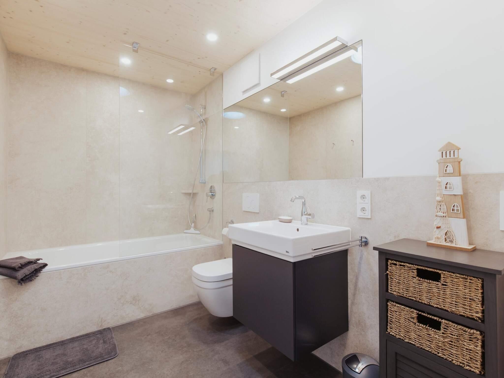 Das Herzstück des gemütlichen Hauses ist der großzügige Wohnbereich mit Sitzecke und die offene große Küche mit angrenzendem Esstisch für sieben Personen. Die Küche verfügt über ein Bora-Kochfeld, Backofen und Spülmaschine. Auch Geschirr, Handtücher und Kochtöpfe sind schon da. Das behindertengerechte Duschbad mit ebenerdiger Dusche mit Verglasung bietet höchsten Komfort.