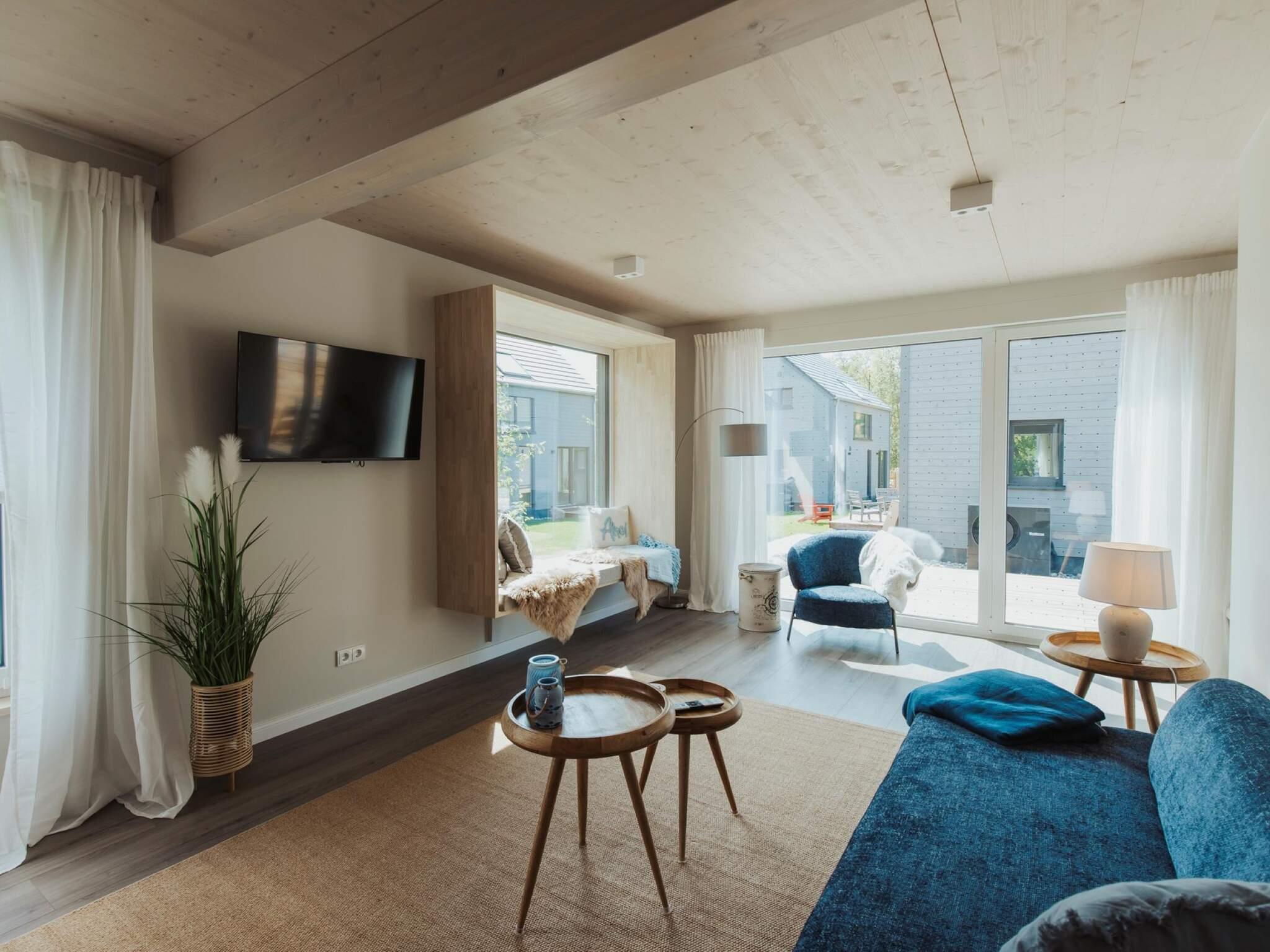 Das Herzstück des gemütlichen Hauses ist der großzügige Wohnbereich mit Sitzecke und die offene große Küche mit angrenzendem Esstisch für sieben Personen. Die Küche verfügt über ein Bora-Kochfeld, Backofen und Spülmaschine. Auch Geschirr, Handtücher und Kochtöpfe sind schon da. Das behindertengerechte Duschbad mit ebenerdiger Dusche mit Verglasung bietet höchsten Komfort.