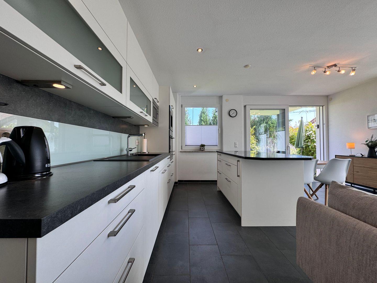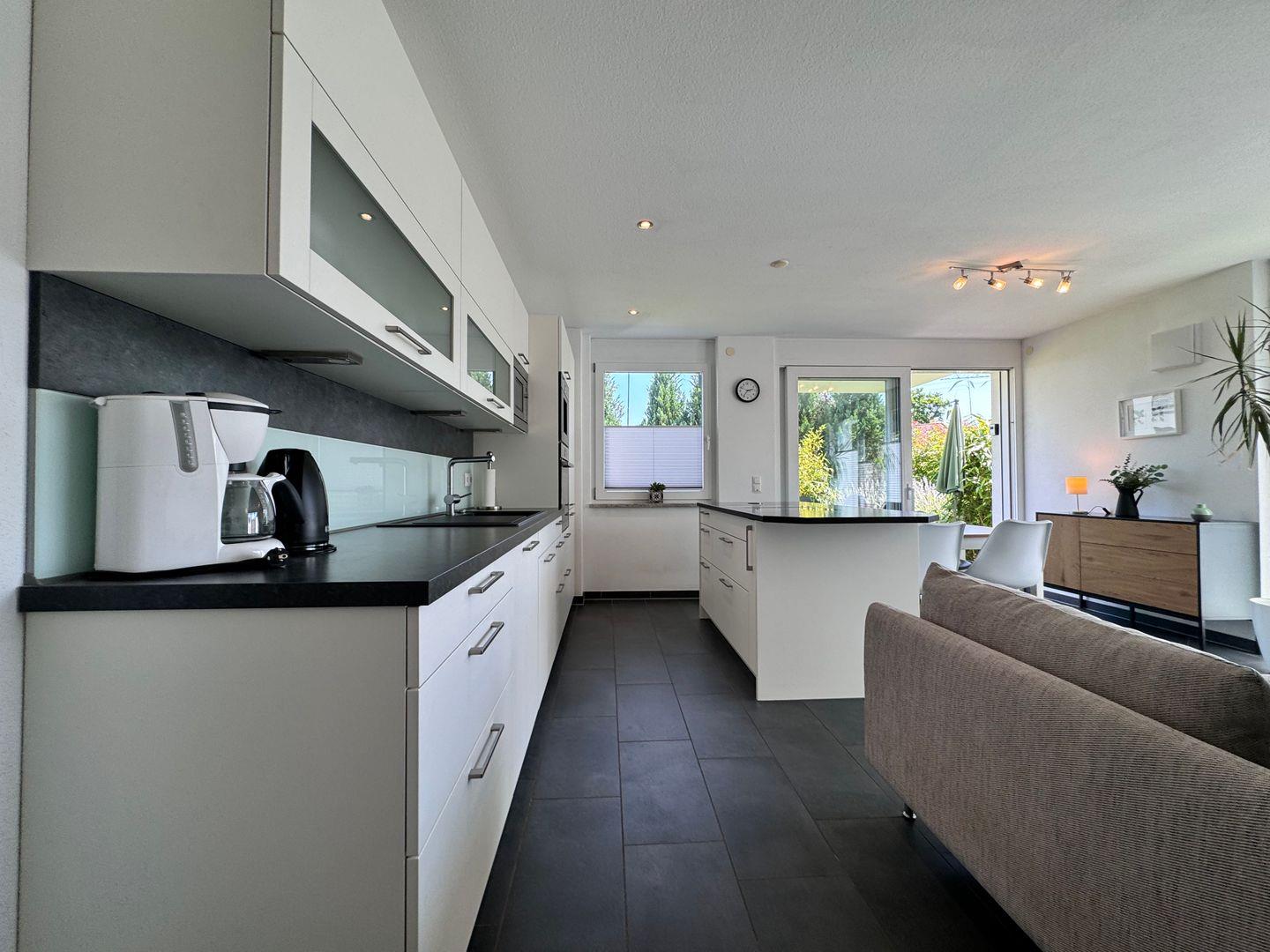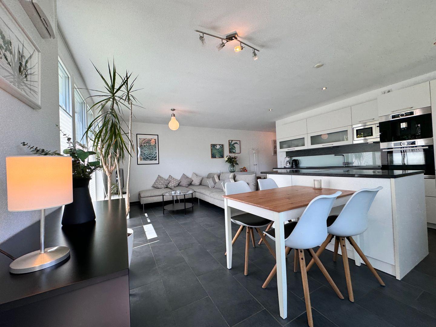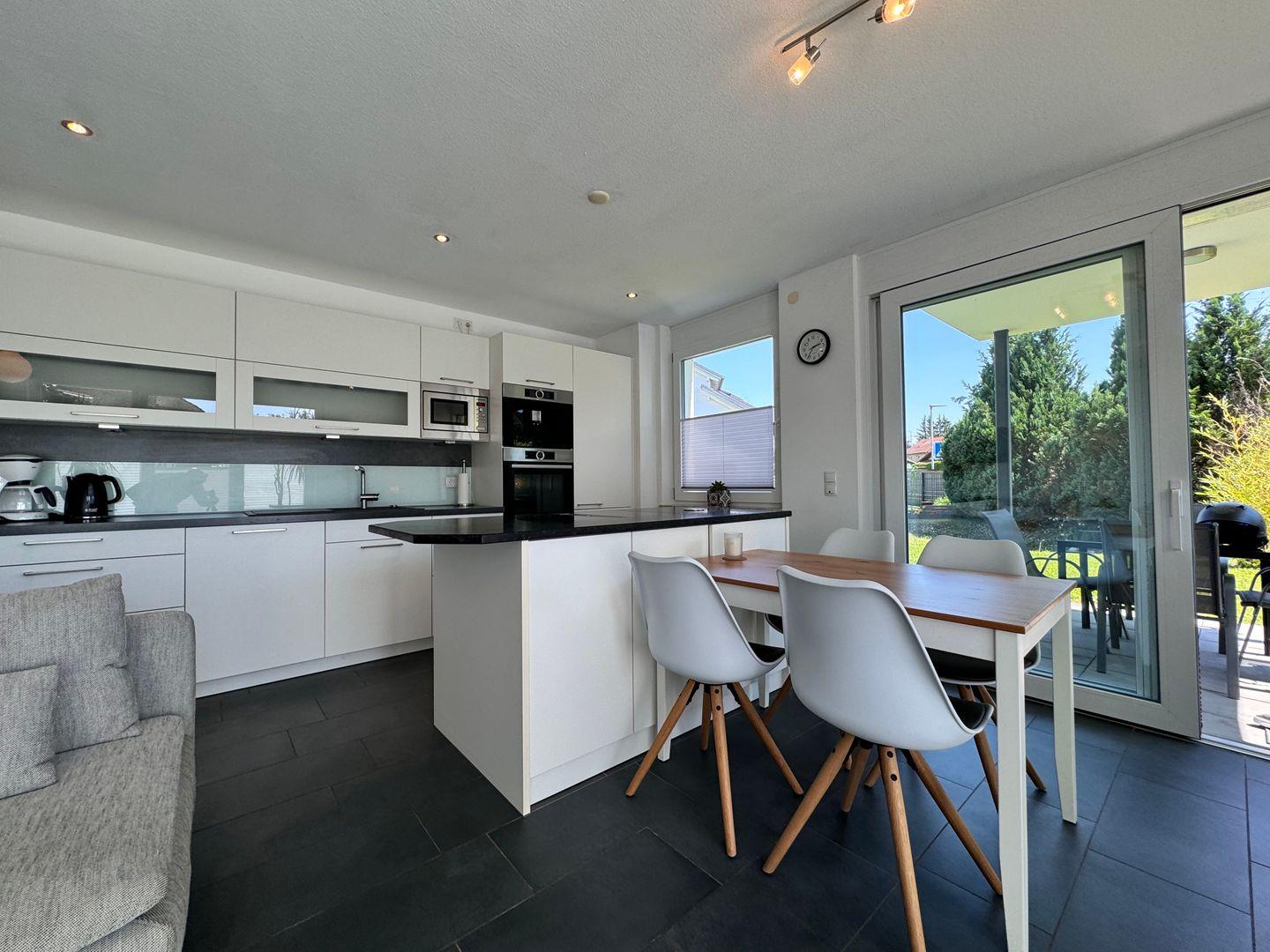 - **Küche und Wohnzimmer**: Die offene Gestaltung verbindet eine voll ausgestattete Küche mit einem gemütlichen Wohnzimmer. Hier können Sie gemeinsam kochen, essen und entspannen.