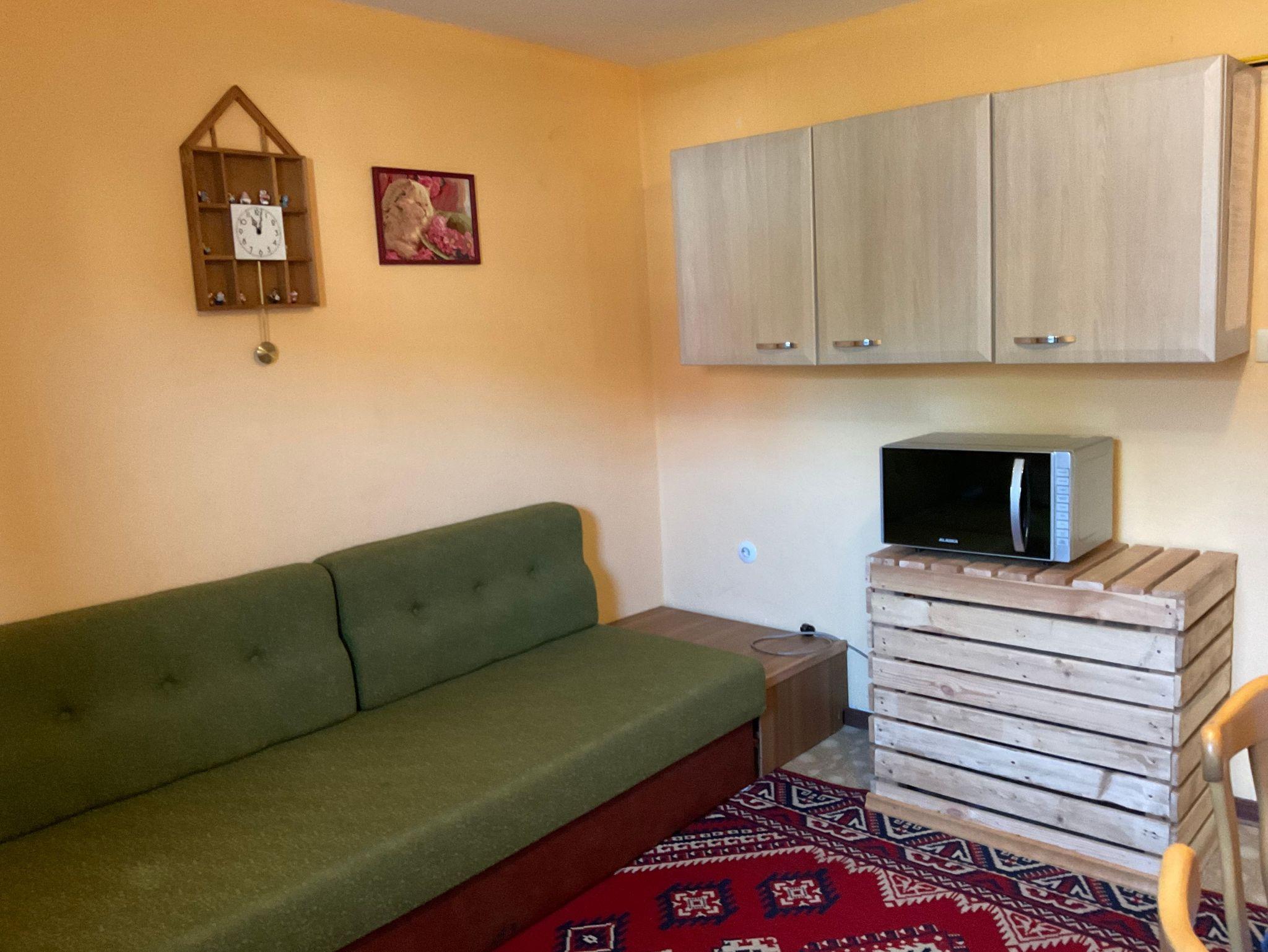Die Ferienwohnung ist sehr einfach ausgestattet und besteht aus einem Wohn-Schlafraum, durch einen Raumteiler getrennt mit Radio und TV und einer Sitzecke. und einem weiteren Zimmer mit zwei Aufbettungsmöglichkeiten auf Bettliegen. Sie hat eine kleine Pantry-Küche und ein Bad mit Dusche und WC.