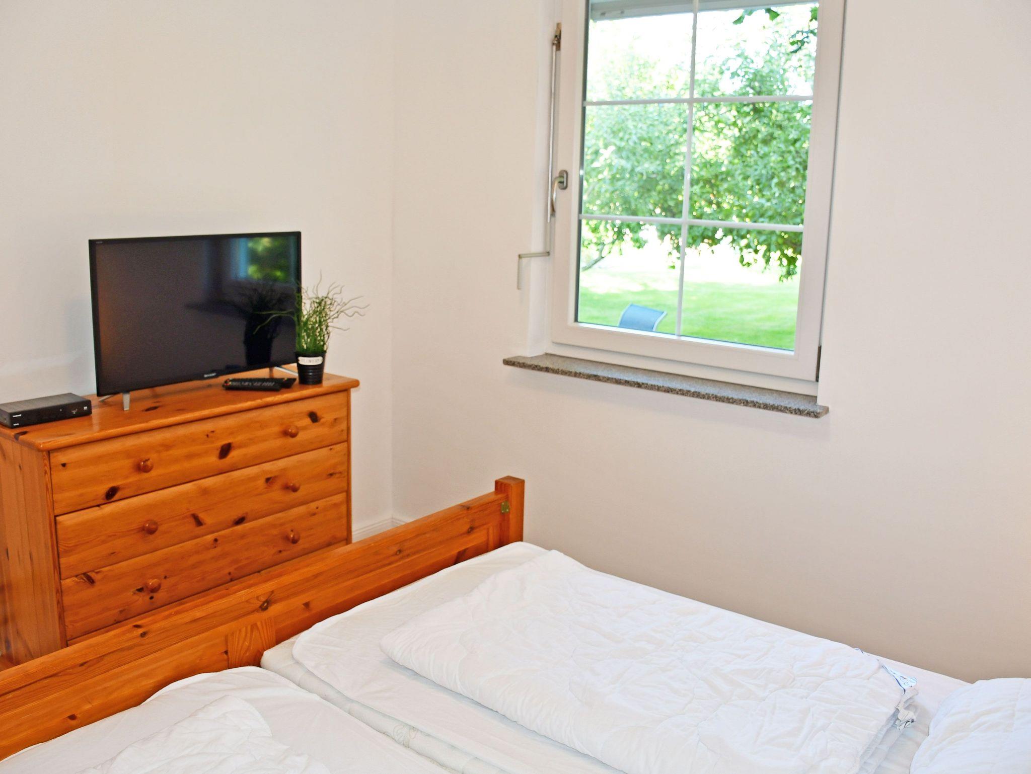 Im Schlafzimmer stehen ein bequemes Doppelbett mit Nachttischen und Leselampen sowie eine Kleiderkomode und ein 2. TV-Gerät mit Flachbild. Das Bad ist mit Dusche, WC, Waschtisch ausgestattet und verfügt über Tageslicht. Auf der vorhandenen Terrasse können Sie die Sonne genießen oder bei einem Gläschen Wein entspannen bzw. Grillen.