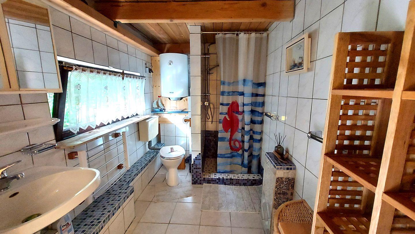 Im Erdgeschoss empfängt Sie ein kleiner Flur. Sie erreichen auf diesem direkten Weg den behaglichen Wohnraum. Hinter der Haustür befindet sich zur linken das Badezimmer, rechts ist die Sauna, die Sie ganz allein nutzen dürfen.