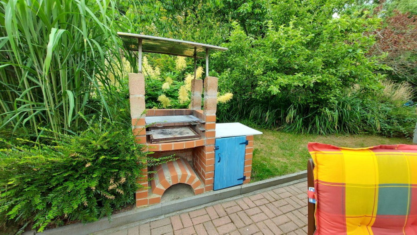 Von der Küche erreichen Sie, vorbei am Garderobenbereich, direkt die große Terrasse. Hier nehmen Sie im Sommer alle Mahlzeiten ein. Ein schöner Grillplatz lädt zum Abendlichen Sitzen und Essen in Familie ein.