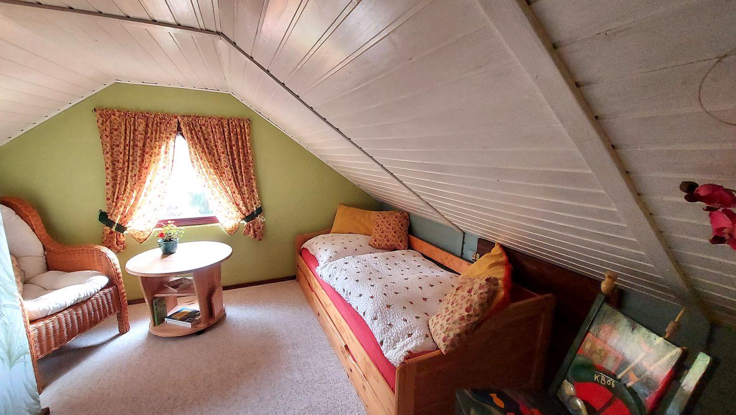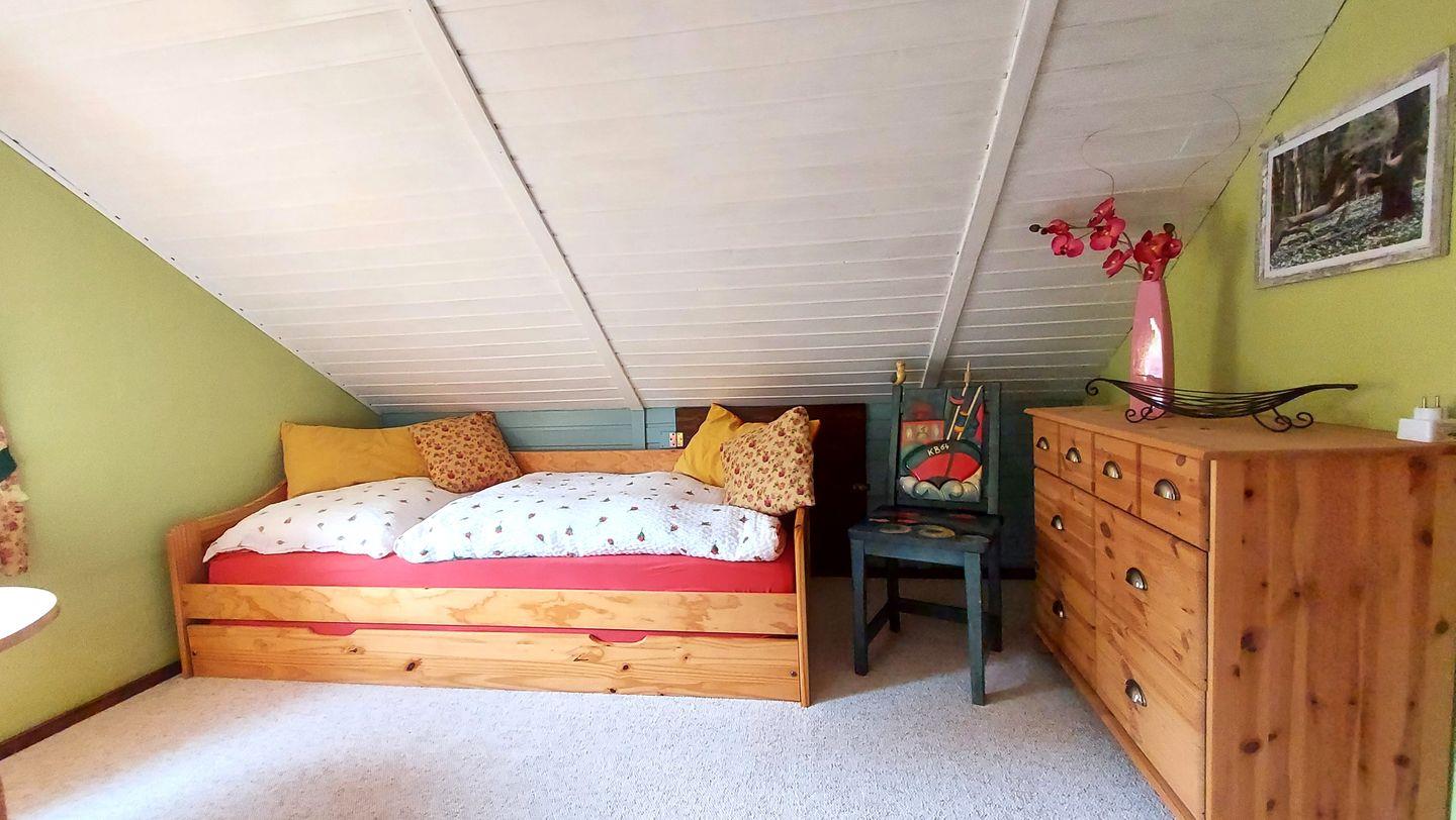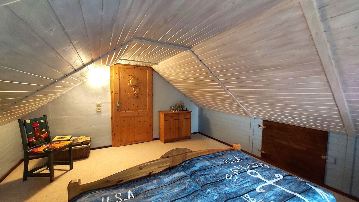 Im Obergeschoss befinden sich die Schlafräume und für bis zu zwei Kinder.