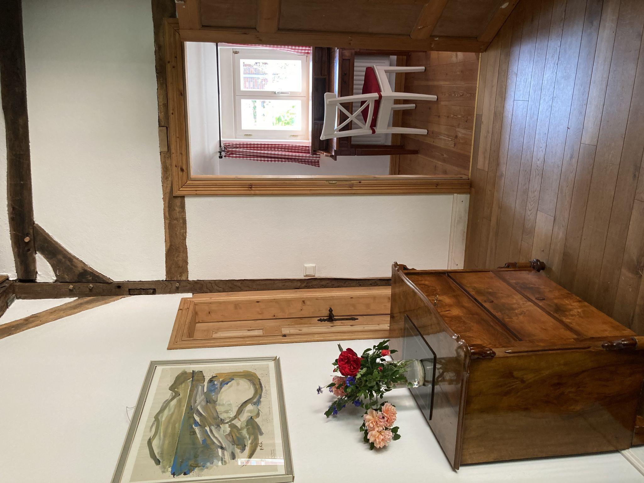 5-Zimmer-Landhaus 150 m2, im Erdgeschoss. Geräumig, gemütlich eingerichtet: offenes grosses Wohn-/Esszimmer. Ausgang zum Garten. 1 Zimmer mit 1 Doppelbett (180 cm, Länge 200 cm). 1 Zimmer mit 1 Bett (90 cm, Länge 200 cm) mit 1 franz. Bett (140 cm, Länge 200 cm) mit 1 Ausziehbett (2 Pers. 2 x 80 cm, Länge 200 cm). Offene Küche (Backofen, Geschirrspüler, 4 Glaskeramikplatten, Toaster, Wasserkocher, elektrische Kaffeemaschine). 2 Duschen/WC. G-Heizung. Terrassenmöbel. Schöne Fernsicht auf die Landschaft. Zur Verfügung: Waschmaschine, Wäschetrockner. Internet (WLAN, gratis). Bitte beachten: geeignet für Familien. Nichtraucher-Unterkunft. Maximal 2 Haustiere/Hunde erlaubt.