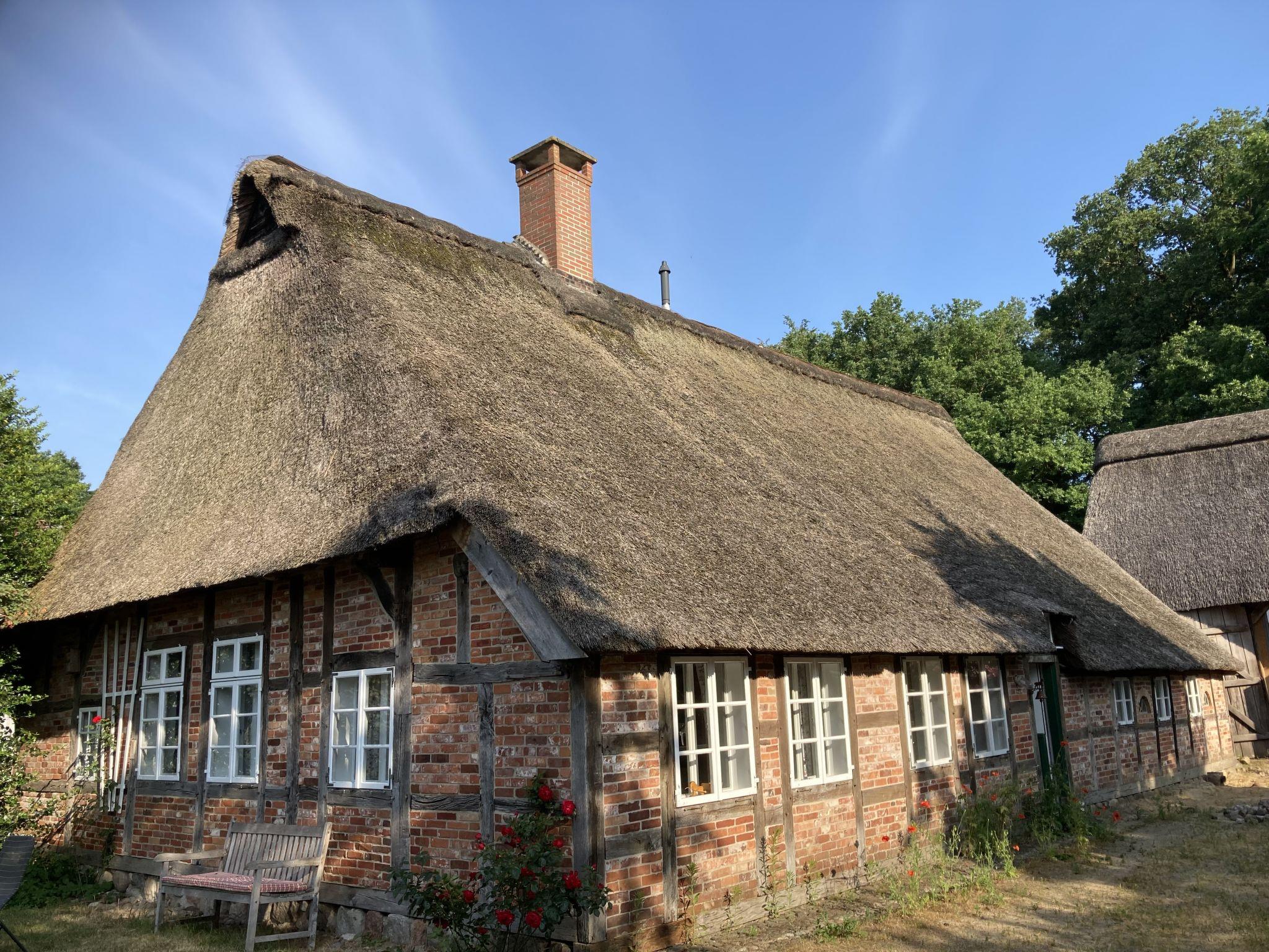 Gemütliches, komfortables Landhaus "Reethuus", umgeben von Wiesen und Feldern. Im Ort Ober-Ochtenhausen, 40 km vom Zentrum von Stade, 73 km vom Zentrum von Bremen, 2 km vom See, 600 m vom Fluss, im Grünen. Zur Alleinbenutzung: Grundstück 18'000 m2. Gartenmöbel, Grill, Feuerstelle, Parkplatz beim Haus. Supermarkt 5 km, Bäckerei 5 km, Bushaltestelle 400 m, Freibad 5 km, See Moorsee 2 km. Nahe gelegene Sehenswürdigkeiten: Gedenkstätte Lager Sandbostel 2 km. Bitte beachten: geeignet für Familien.