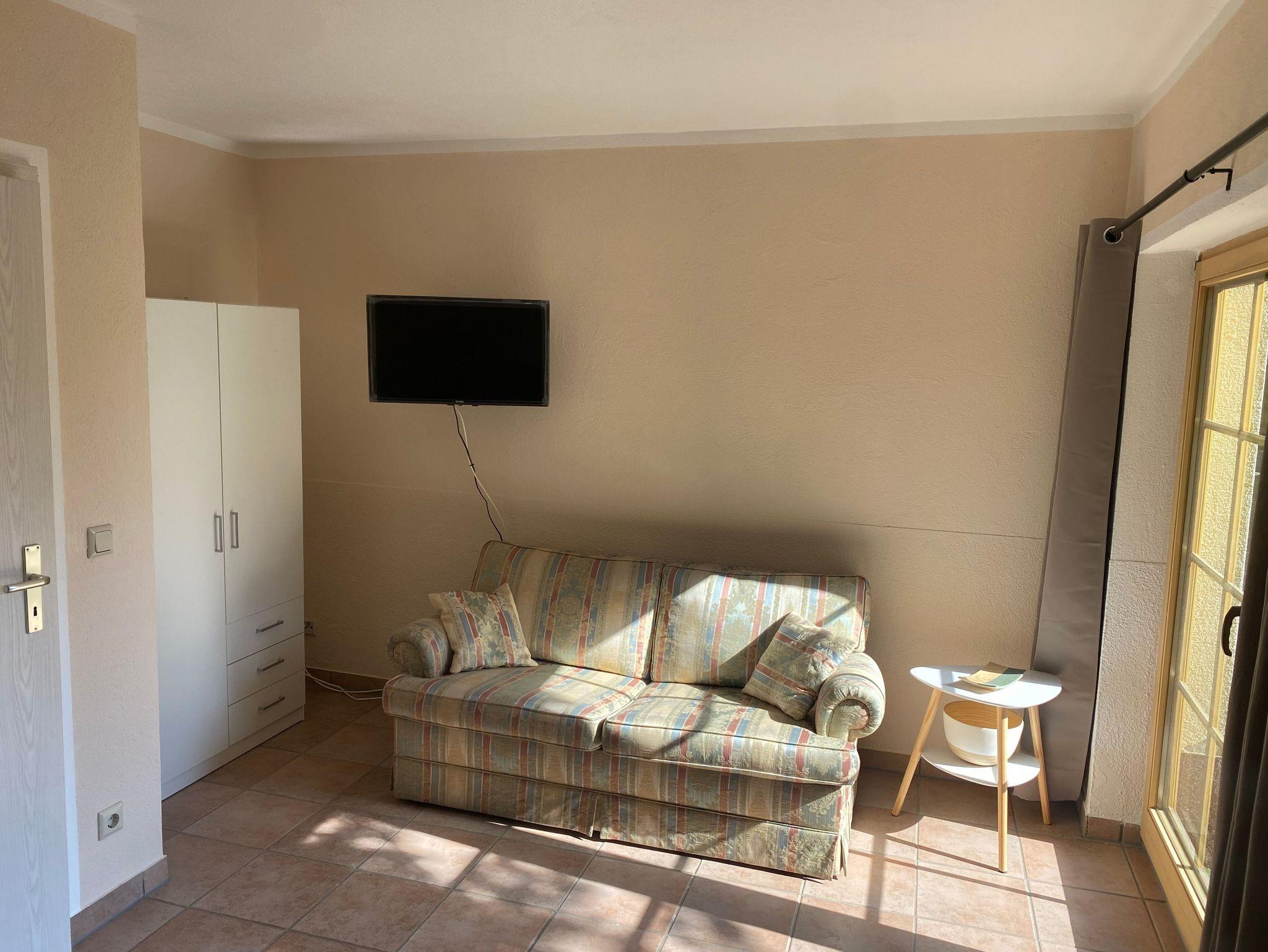 Wohnen in den drei separaten Doppelzimmern mit Terrassenzugang. Alle Zimmer sind ausgestattet mit einem Doppelbett, einer Sitzecke, einem TV und haben ein eigenes Badezimmer. WLAN mit Gästezugang ist inklusive.