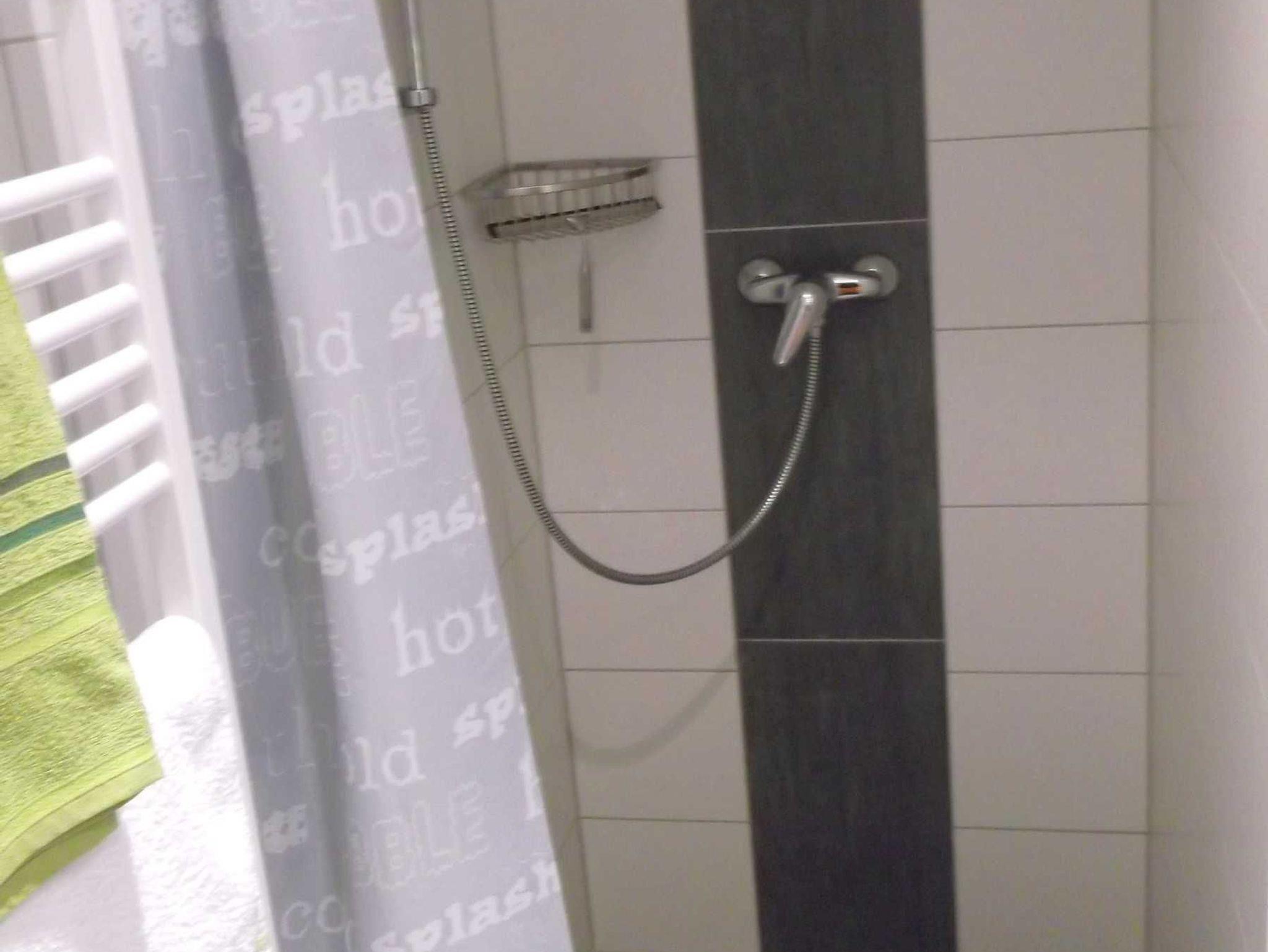 Es gibt Fußbodenheizung im Bad, die Dusche ist ebenerdig.