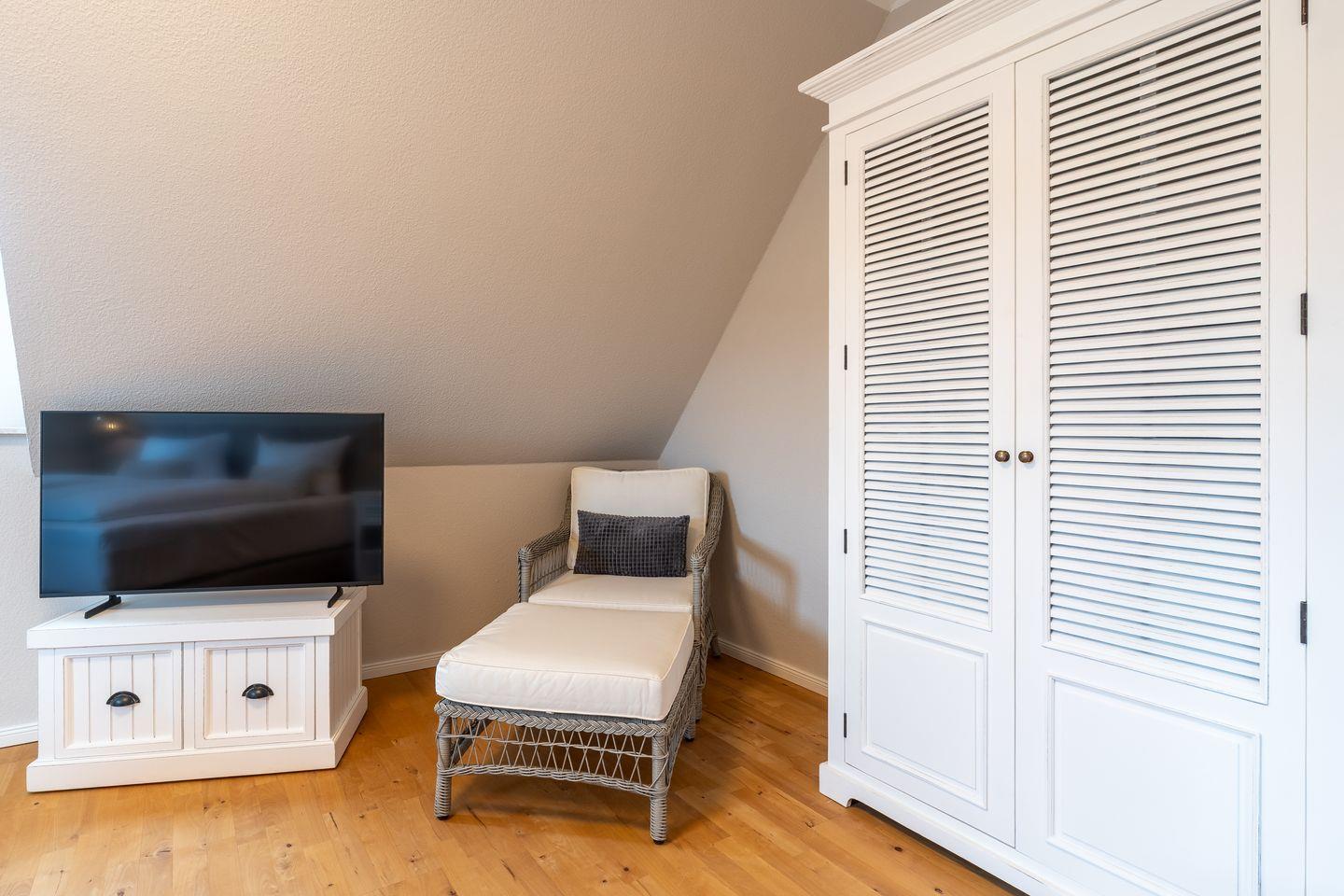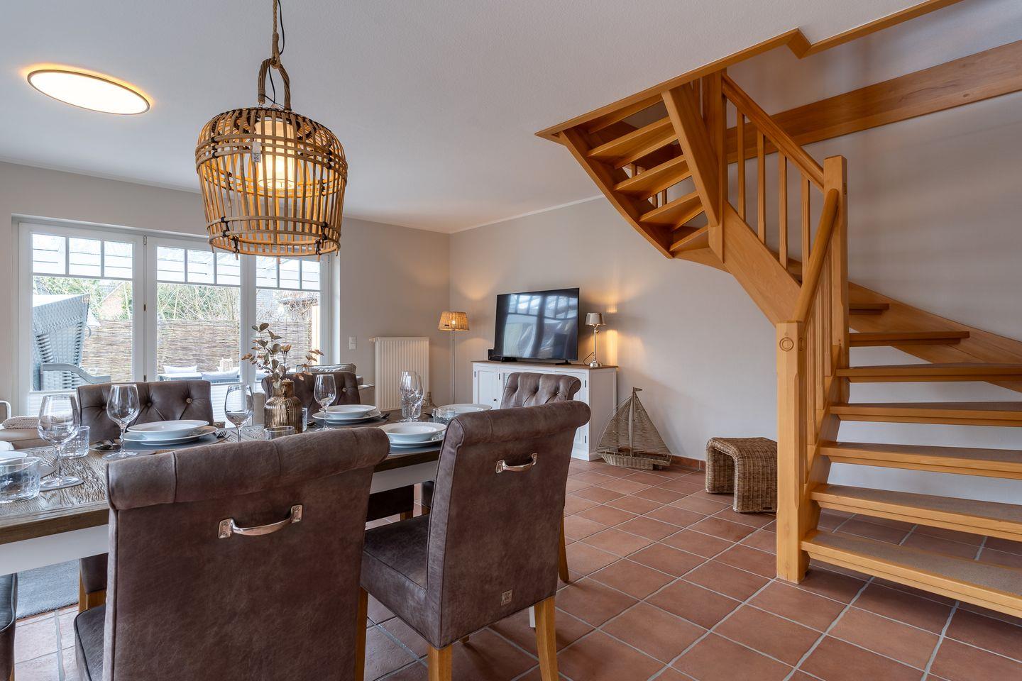 Der Außenbereich der Unterkunft ist besonders hervorzuheben. Die überdachte Terrasse lädt dazu ein, auch bei weniger gutem Wetter die frische Nordseeluft zu genießen. Gardenmöbel sind ebenfalls vorhanden, sodass Sie die ruhigen Stunden in der Natur verbringen können. Ein Strandkorb bietet Ihnen den perfekten Ort, um die Sonne zu genießen.