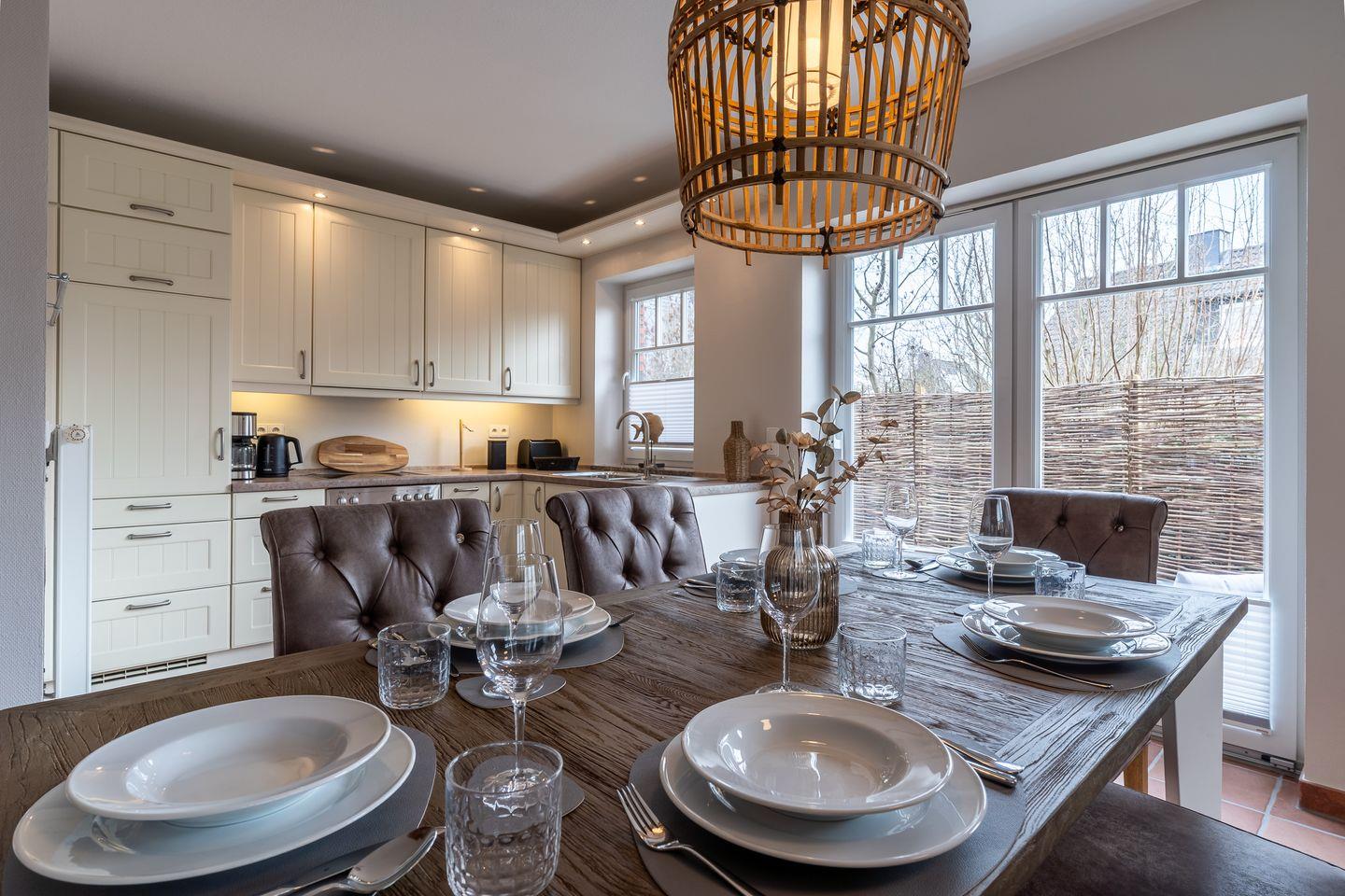 Die Unterkunft verfügt über insgesamt 4 Zimmer, darunter 3 Schlafzimmer, die viel Platz und Privatsphäre bieten. Im Parterre genießen Sie eine offene Küche, die mit modernen Annehmlichkeiten ausgestattet ist, darunter ein Cerankochfeld, Backofen, Kühlschrank mit Gefrierfach und Geschirrspüler. Die Küchenutensilien sind vollständig vorhanden, sodass Sie Ihre Lieblingsgerichte zubereiten können. Ein gemütlicher Essbereich verbindet die Küche mit dem Wohnzimmer.