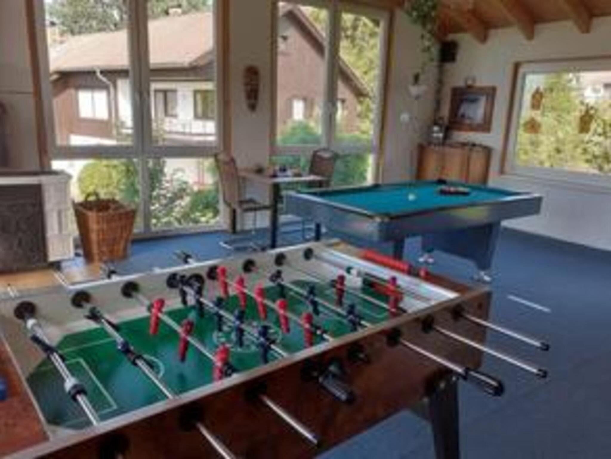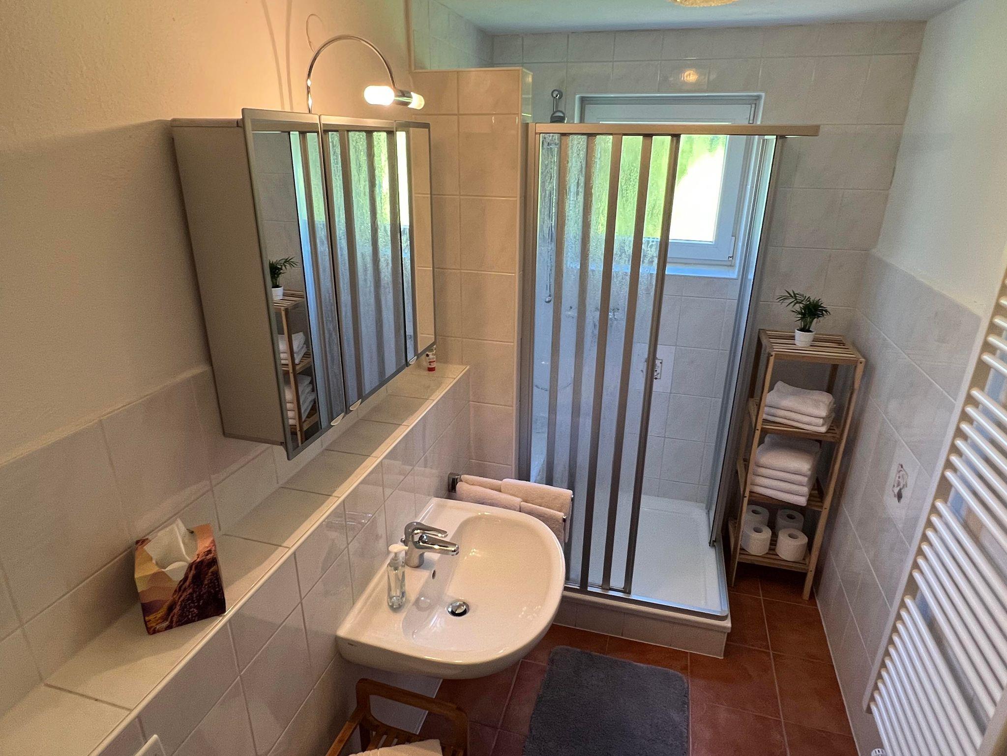 Die großzügige 70 m² Erdgeschosswohnung liegt idyllisch auf einem sonnigen 1.800 m² großen Waldgrundstück und bietet ideale Voraussetzungen für erholsame Urlaubstage. Das helle Wohnzimmer mit direktem Zugang zur Terrasse lädt zum Entspannen ein. Ihnen stehen ein Schlafzimmer mit Doppelbett, ein separates Kinder- bzw. Jugendzimmer mit Einzelbetten (inkl. ausziehbarem 3. Bett und eigenem TV) sowie eine komfortable Schlafcouch im Wohnzimmer für die 5. und 6. Person zur Verfügung. Ein besonderes Highlight ist die Sauna auf der Etage sowie der neu angebaute Panorama-Aufenthaltsraum mit Billard, Profi-Kicker und gemütlichem Kachelofen. Die voll ausgestattete Küche lässt keine Wünsche offen – inklusive Backofen, Mikrowelle, Wasserkocher und hochwertiger Kaffeemaschine (Nivona 7). Das moderne Bad verfügt über eine Dusche mit Sitzmöglichkeit und Handtuchtrockner. Wohnungen 2 und 3 befinden sich im selben Haus und sind gemeinsam buchbar.