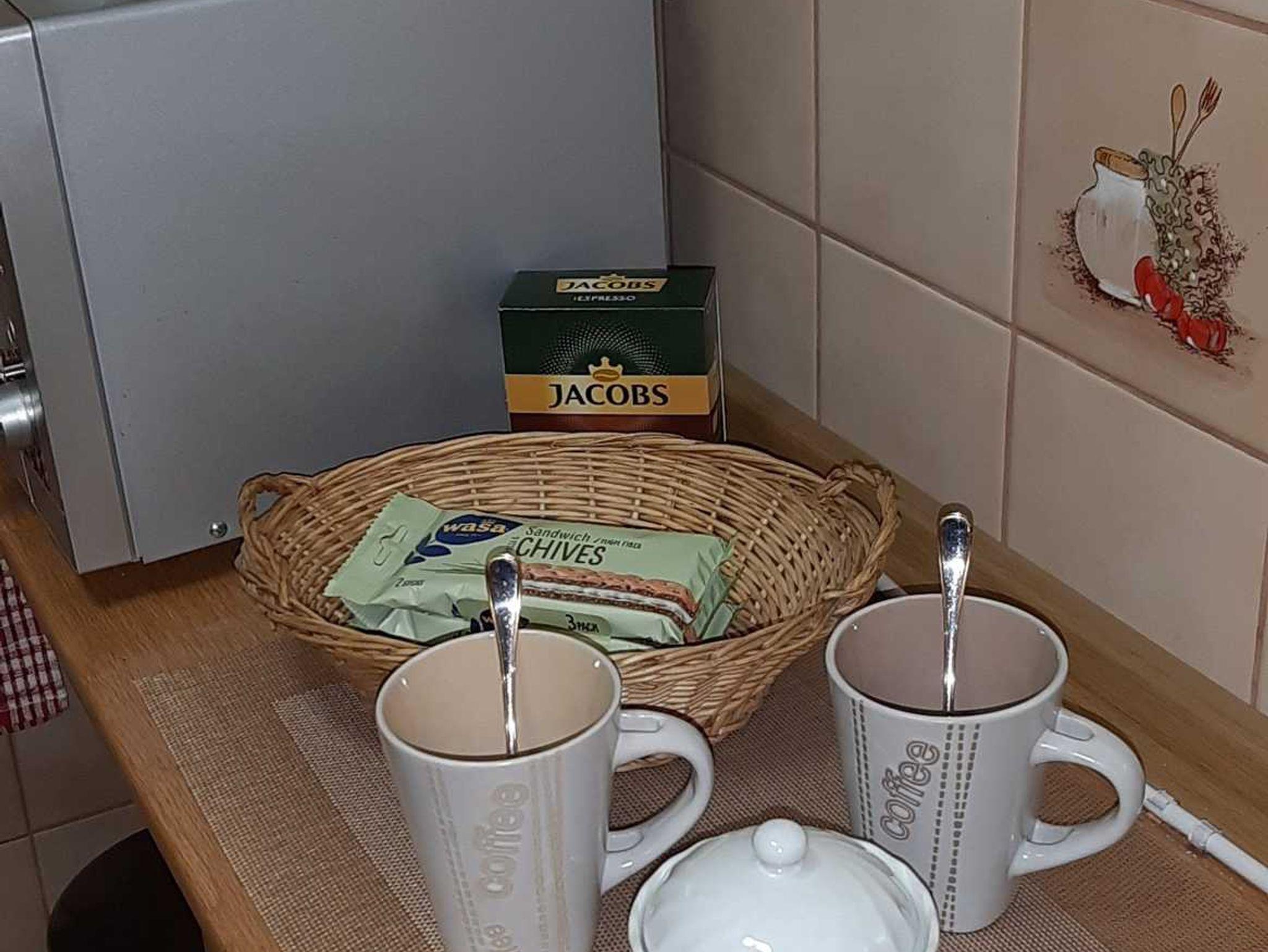 Das großzügige Wohn- und Esszimmer im modern-rustikalen Stil verfügt über einen gemütlichen Essbereich für bis zu fünf Personen, ein Sofabett sowie SAT-TV, DVD-Player, Stereoanlage, WLAN und elektrische Außenrollläden. Im Schlafzimmer finden Sie ein Doppelbett, einen Flachbildfernseher und großzügige Einbauschränke sowie ebenfalls elektrische Außenrollläden. Die Küche ist mit Kühlschrank, Herd/Backofen, Mikrowelle und allen wichtigen Elektrogräten und Küchenutensilien ausgestattet. Das geräumige Badezimmer verfügt über eine Badewanne mit Dusche. Im Flur finden Sie eine Garderobe.