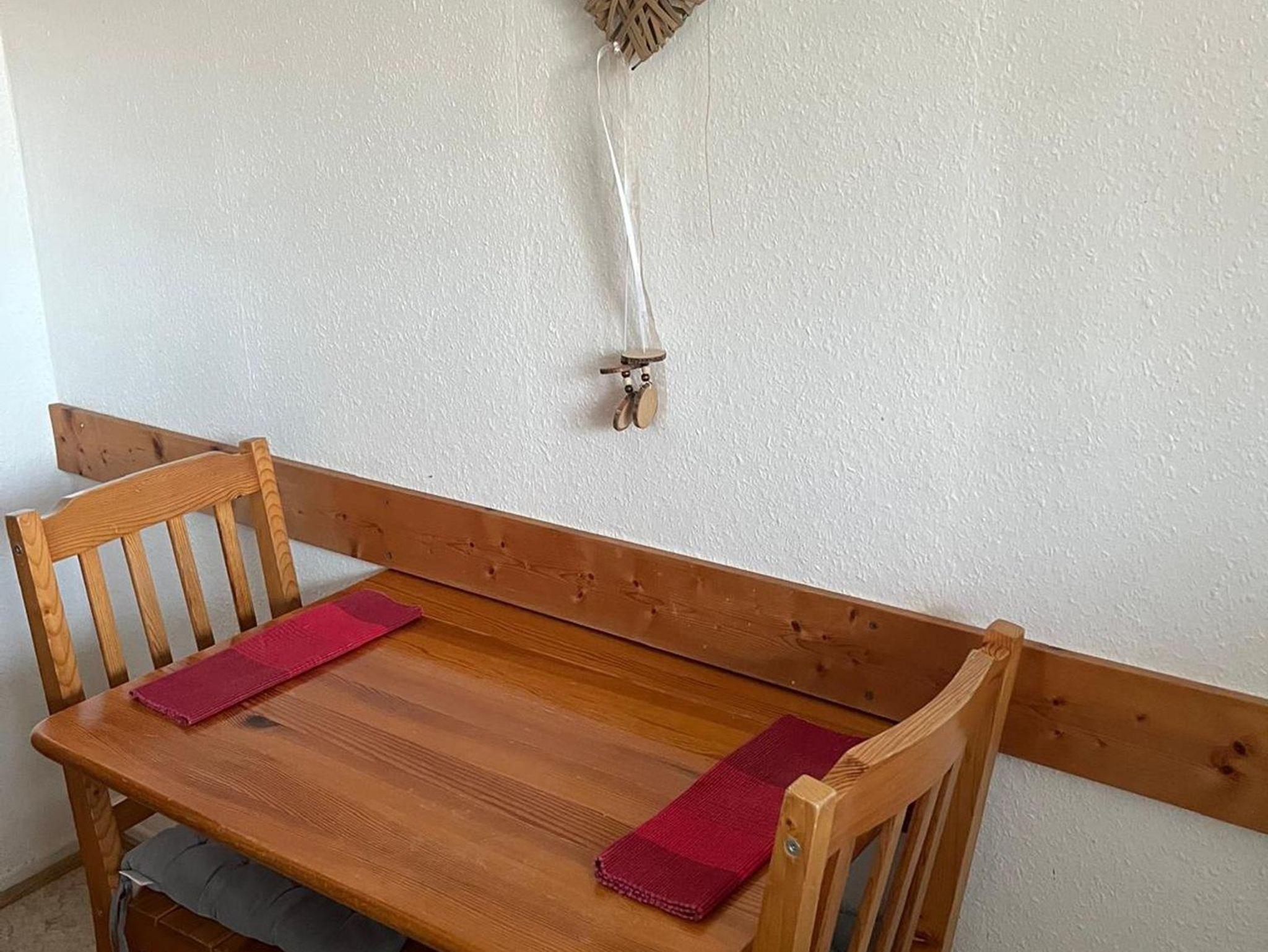 Die Küche ist ausgestattet mit einem 4-Sterne-Kühlschrank, Kaffeemaschine, Toaster, Wasserkocher, 2-Platten-Herd, Microwelle und für 4 Personen Gläser, Geschirr, Töpfe und Besteck. Zur Wohnung gehört ein Kabel-TV und ein Radio-Wecker.