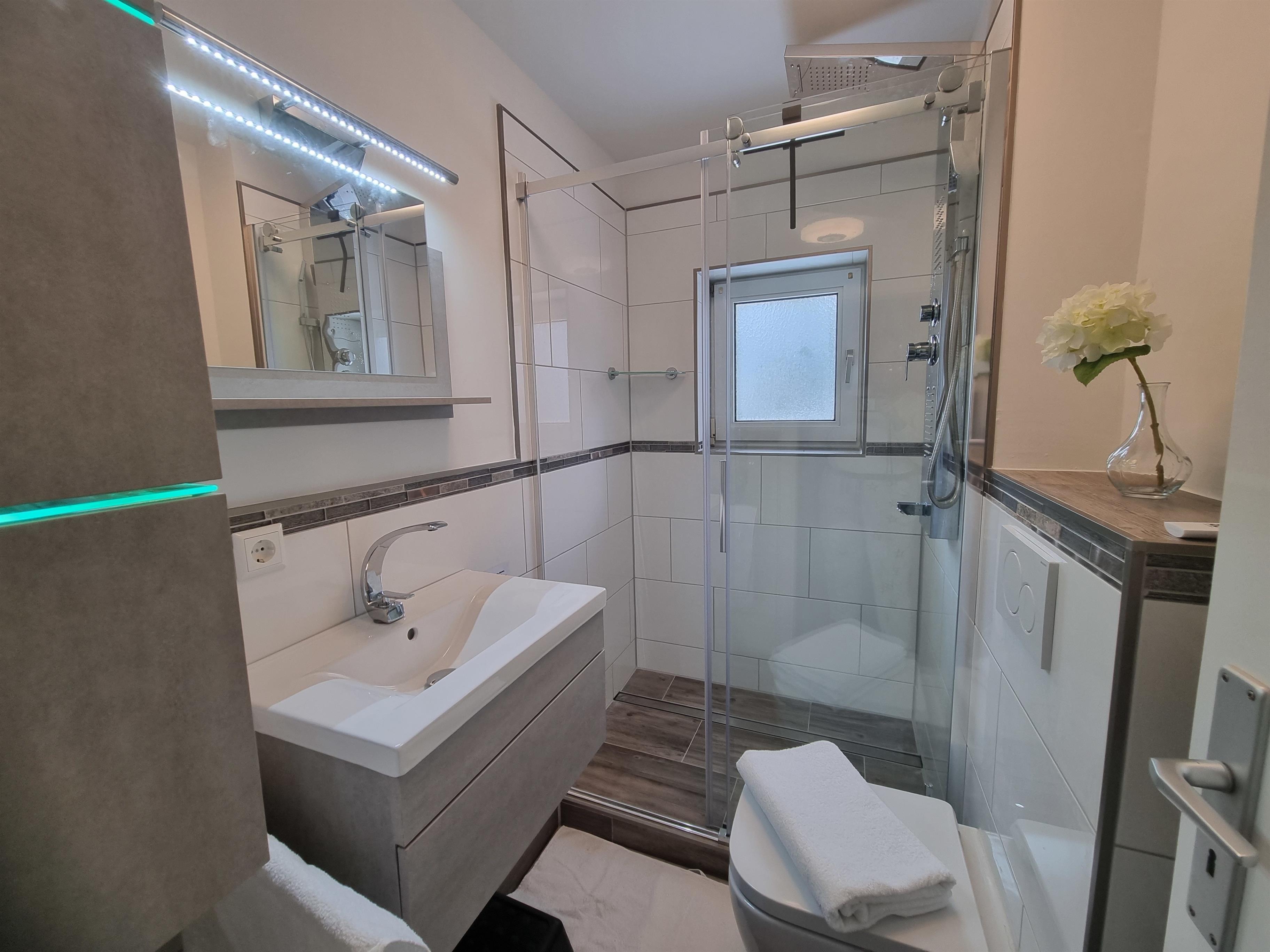 Unser besonderes Highlight sind unsere kleinen Wellnessbereiche im Kellergeschoss mit Sauna, Whirlpool,Infarotkabine ,Sportgeräten ,WC und Dusche.