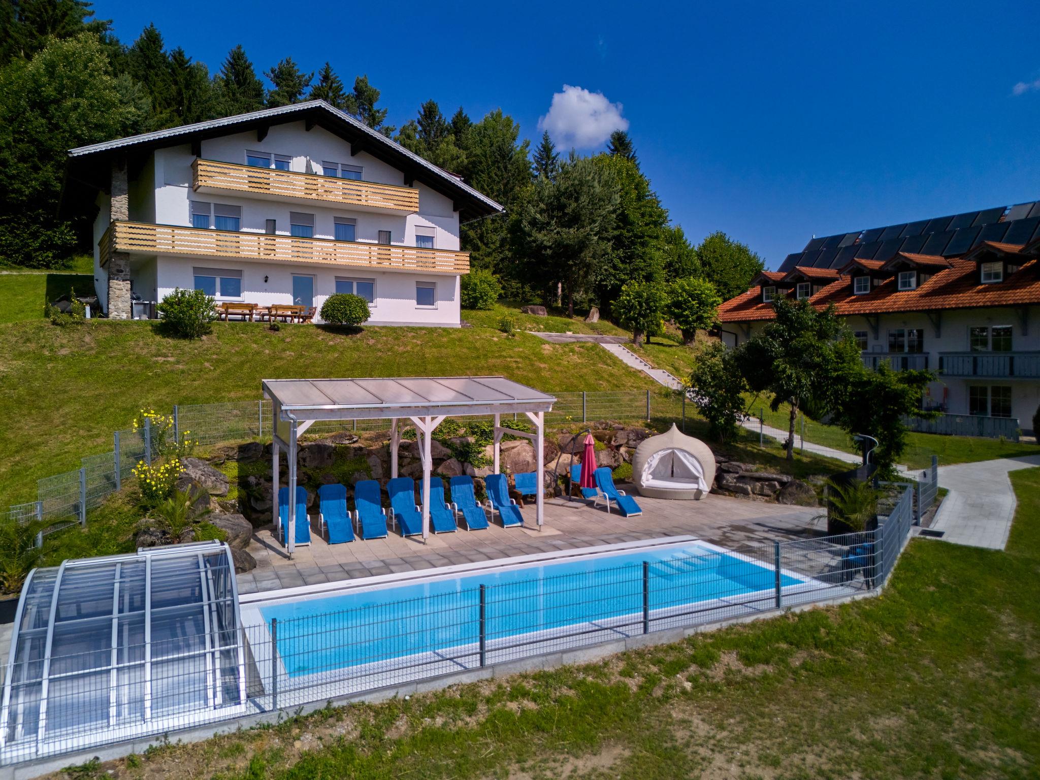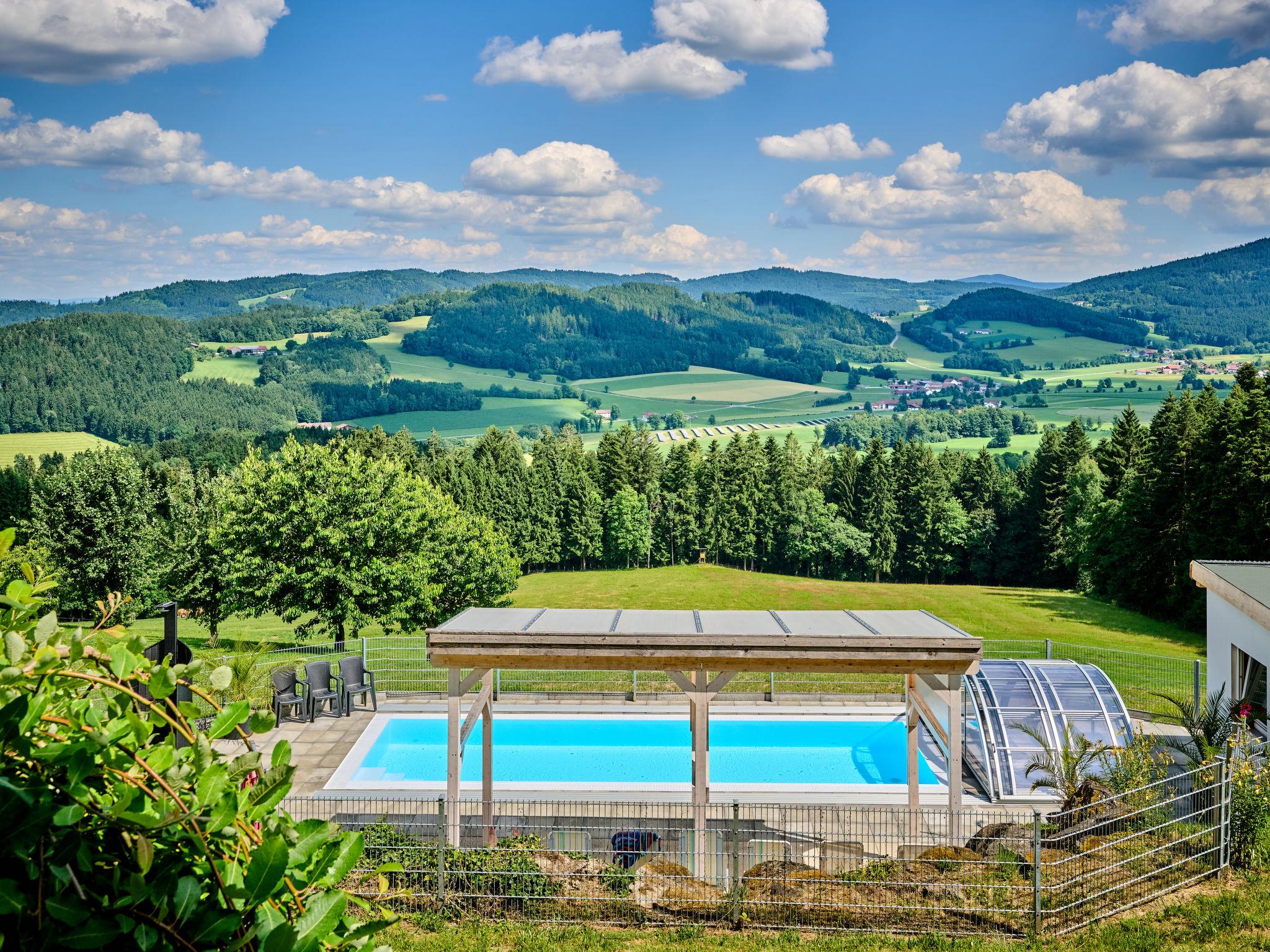 Grosses, gemütliches Einfamilienhaus "Marianne", 700 m.ü.M.. Im Ortsteil Baierweg, 4 km vom Zentrum von St. Englmar, 5 km vom Zentrum von Viechtach, 75 km vom Zentrum von Regensburg, sonnige, erhöhte Lage am Hang, 4 km vom Skigebiet. Zur Mitbenutzung: Schwimmbad beheizt (7 x 4 m, saisonale Verfügbarkeit: 01.Apr. - 31.Okt.). Zur Alleinbenutzung: Grundstück 1 ha mit Wiese. Tischtennis, Terrasse, Gartenmöbel, Grill. Brötchenservice. Parkplatz auf dem Grundstück. Einkaufsgeschäft 4 km, Supermarkt 5 km, Bushaltestelle "Baierweg" 400 m, Bahnstation "Viechtach" 7.5 km, Hallenbad 50 m. Skilift 4 km, Skibushaltestelle 250 m. Nahe gelegene Sehenswürdigkeiten: Kletterwald 3 km, Rodel- und Freizeitparks St. Englmar 5 km, Waldwipfelpfad 4 km. Bekannte Skigebiete sind gut erreichbar: Sankt Englmar/Predigtstuhl, Bodenmais/Großer Arber. Bitte beachten: Fahrzeug empfohlen. Der Außenpool befindet sich auf dem Gelände des benachbarten Hotels ca. 50 m. Mietbar: Badetasche mit Bademantel, Badeslipper, Saunatuch und Poolhandtuch, 15 € pro Person.