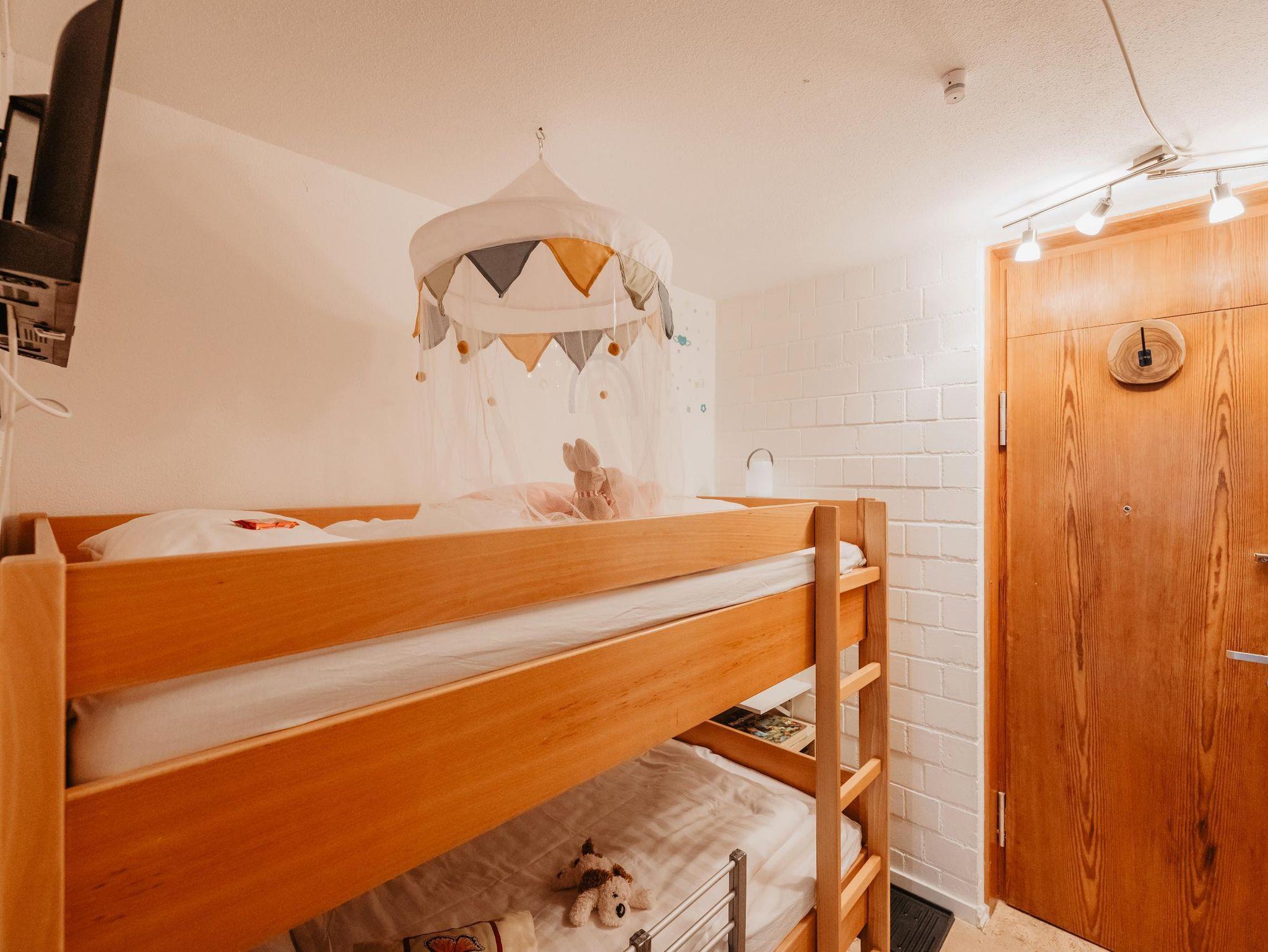 Die Schlafmöglichkeiten sind praktisch und komfortabel gestaltet: Ein Etagenbett bietet zwei Schlafplätze – besonders beliebt bei Kindern – und eine gemütliche Schlafcouch bietet zusätzlich Platz für zwei Personen. Das moderne Bad verfügt über eine Dusche und ein WC.