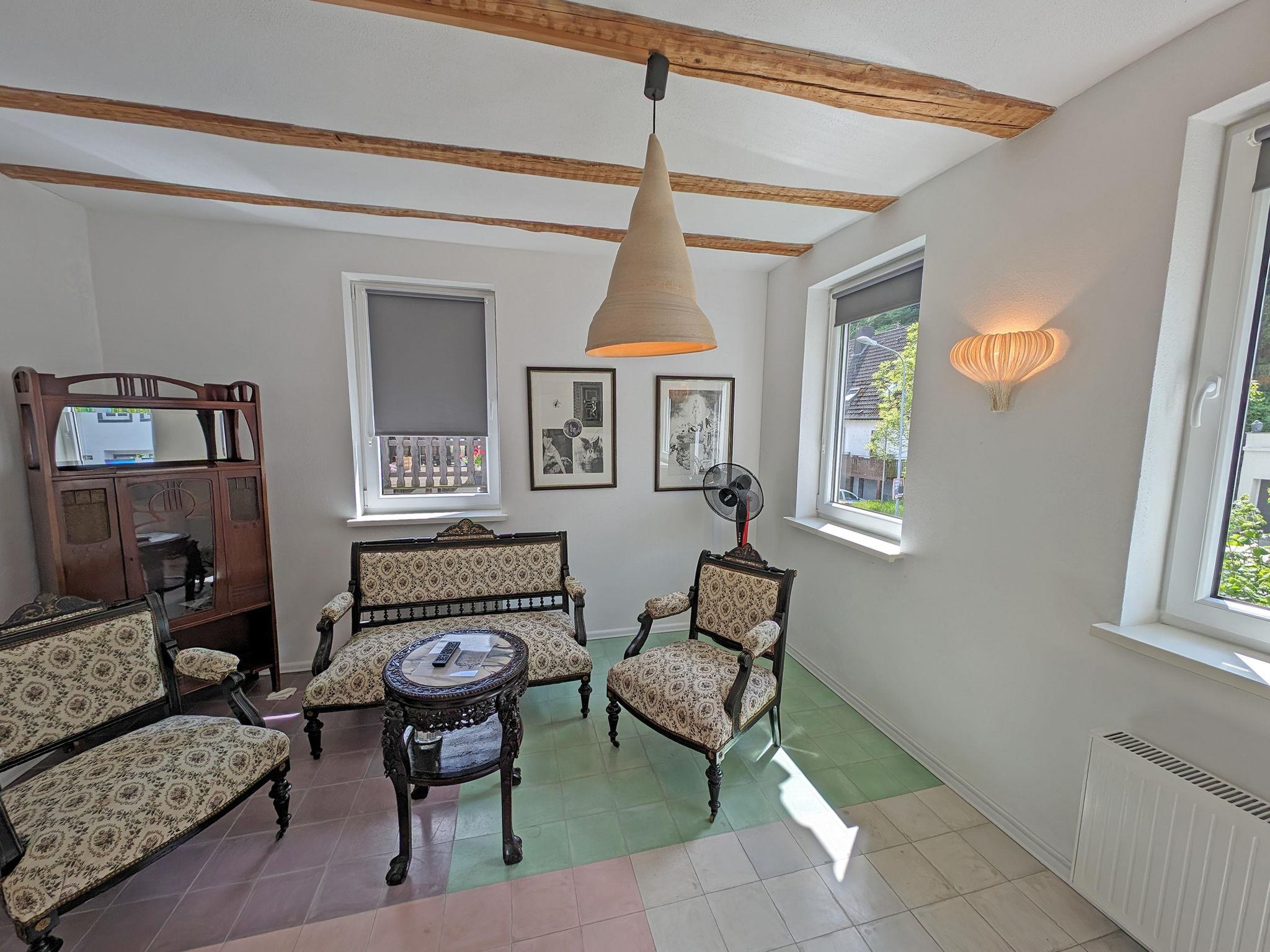 "Wohnung 3", 2-Zimmer-Wohnung im Obergeschoss. Hell, zweckmässig eingerichtet: Obergeschoss: 1 Zimmer mit 1 Doppelbett (2 x 90 cm, Länge 200 cm). Kleines Wohnzimmer mit Kabel-TV (Flachbildschirm). Wohnküche (2 Kochplatten, Geschirrspüler, Toaster, Wasserkocher, elektrische Kaffeemaschine) mit Essecke und TV (Flachbildschirm). Dusche/WC. Heizung. Schöne Sicht auf den Fluss. Bitte beachten: Nichtraucher-Unterkunft. Maximal 1 kleines Haustier/Hund erlaubt. Rauchmelder, Feuerlöscher. Rückseitig verläuft die Strecke der Mittelrheinbahn mit regelmäßigem Zugverkehr.