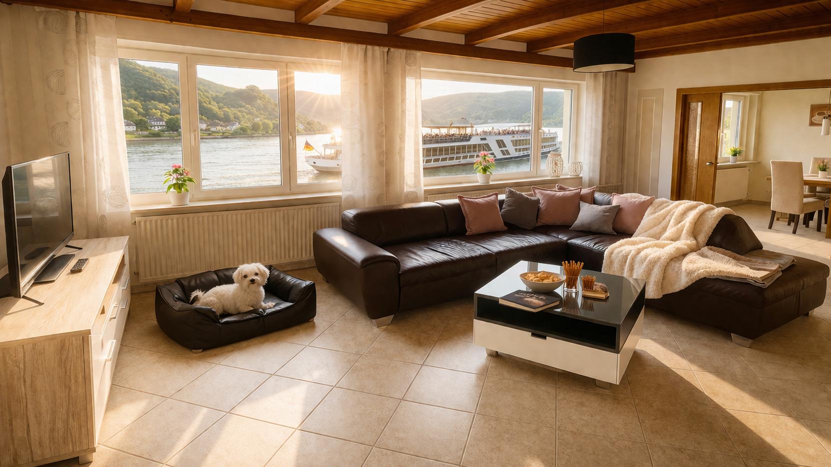 Dieses gemütliche und einzigartige Haus bietet Ihnen einen wunderschönen Blick auf den Rhein und die Burg Maus.