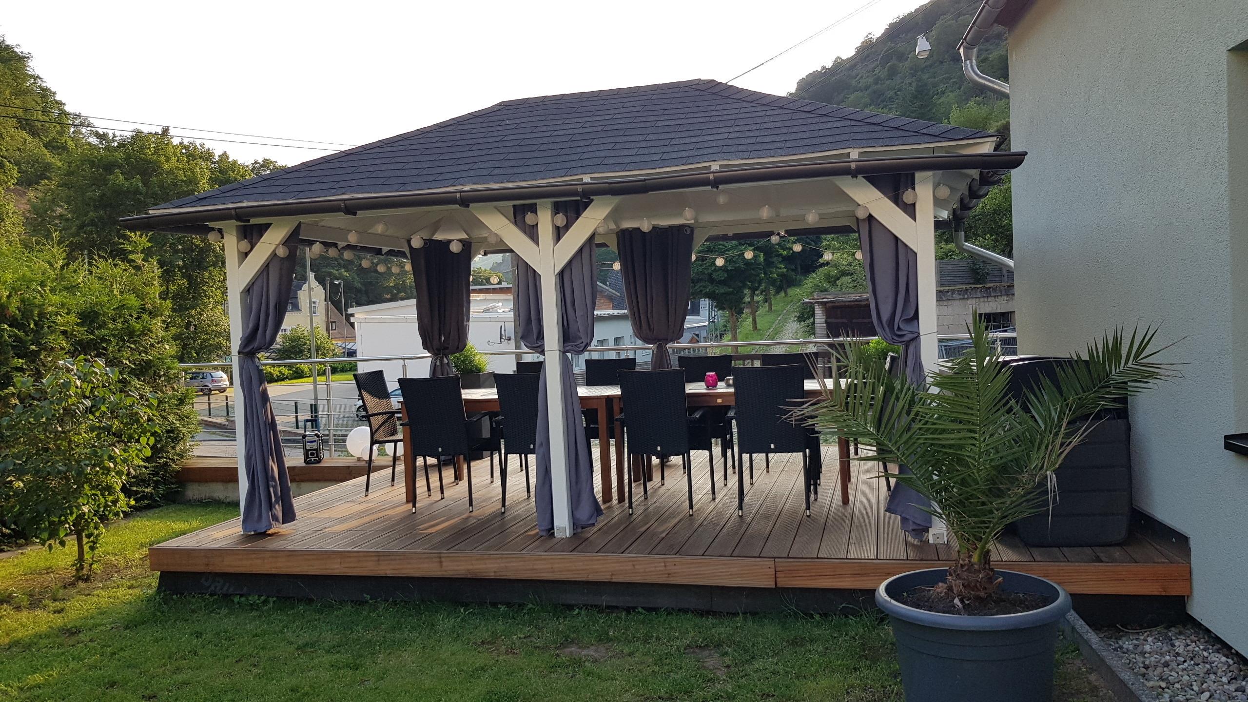 Zur Wohnung gehört eine möbilierte Gemeinschaftsterrasse, auf der Sie z.B nach einer interessanten Burgenbesichtigung, noch eine entspannte Stunde verbringen können.